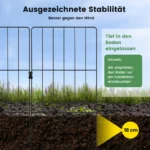 - Galimybė įkasti tvorą 18 cm gylio dėl geresnio stabilumo ir apsaugos nuo vėjo.