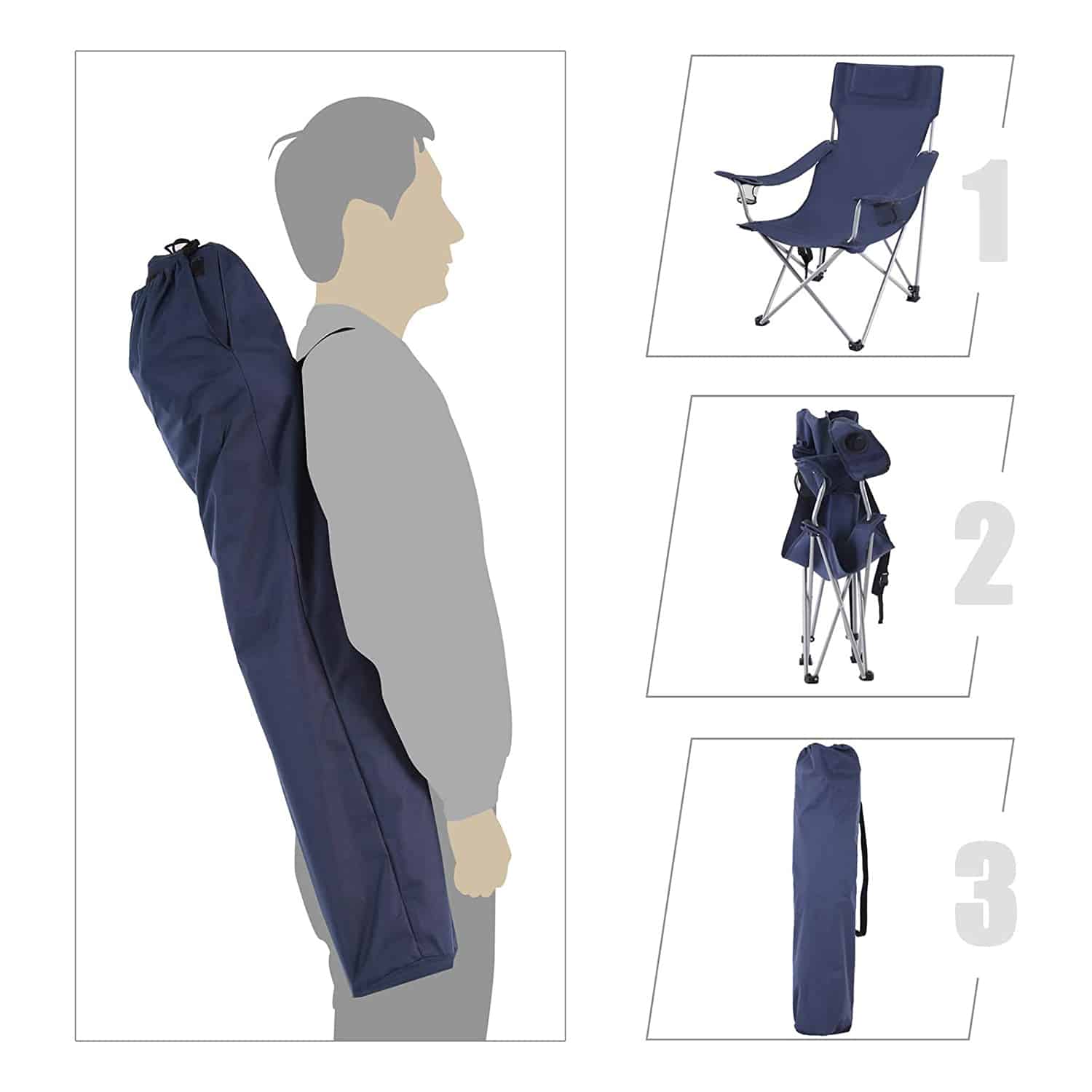 Komplekte rasite 1 stovyklavimo kėdę ir 1 transportavimo krepšį, kuris palengvins kėdės pernešimą ir laikymą.