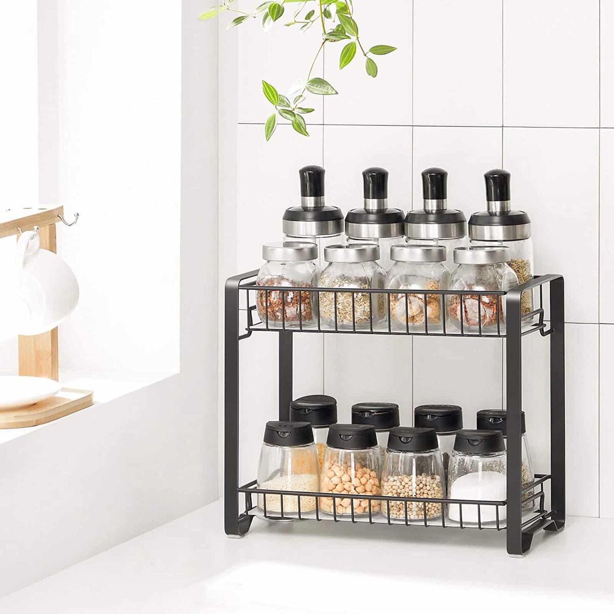 Šios prieskonių lentynėlės privalumai: 31 x 16 x 25,7 cm dydžio, ji virtuvėje užima mažai vietos, tačiau su 2 lentynomis suteikia daug vietos prieskoniams ir pan. Paaukštinti kraštai apsaugo jūsų daiktus nuo kritimo. Lengvam surinkimui nereikia jokių įrankių. 2 lengvai valomos plastikinės plokštės užtikrina lygų paviršių ir apsaugo mažus daiktus nuo kritimo ar įstrigimo. 4 neslidžios kojelės apsaugo nuo slydimo ir apsaugo jūsų darbiniai paviršiai nuo įbrėžimų. Taip pat tinka virtuvės spintelėms, sandėliukams, vonios kambariui ar valgomajam.