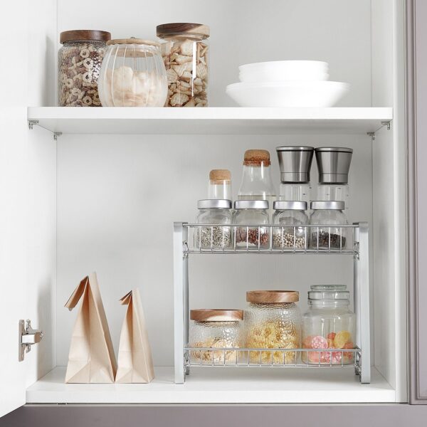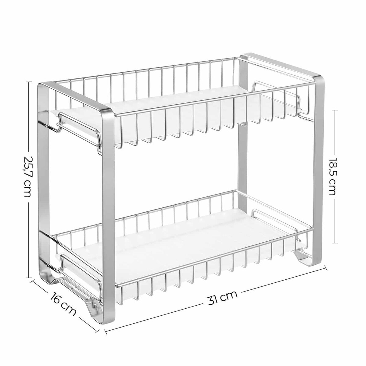 - 31 x 16 x 25,7 cm dydžio, ji virtuvėje užima mažai vietos, tačiau su 2 lentynomis suteikia daug vietos prieskoniams ir panašiai.