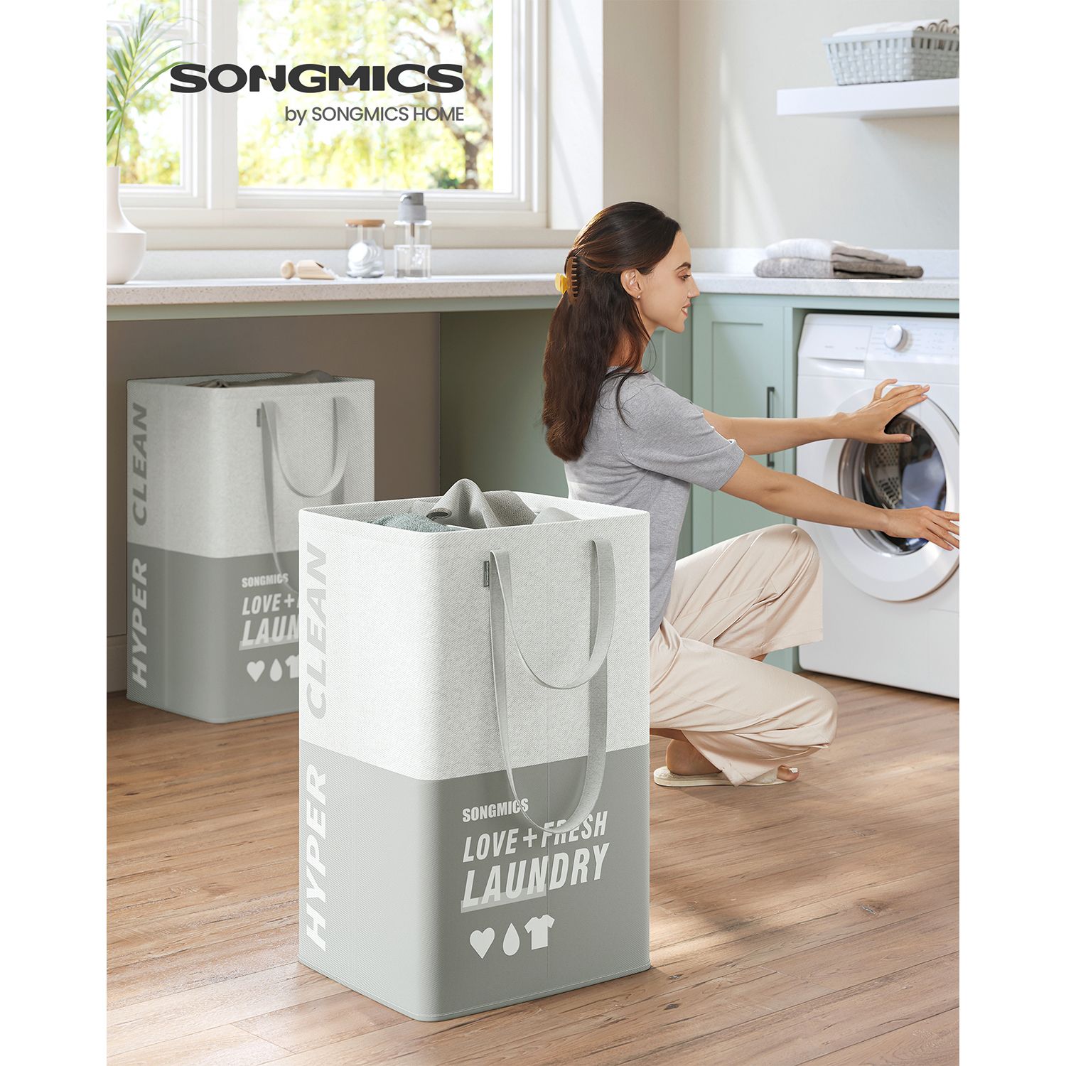 Šis 2 vnt. skalbinių krepšelių komplektas su 2 skyriais yra puikus pasirinkimas tvarkai palaikyti jūsų namuose. Krepšeliai yra šviesiai pilkos spalvos, todėl lengvai derės prie bet kokio interjero.