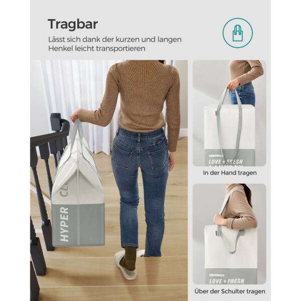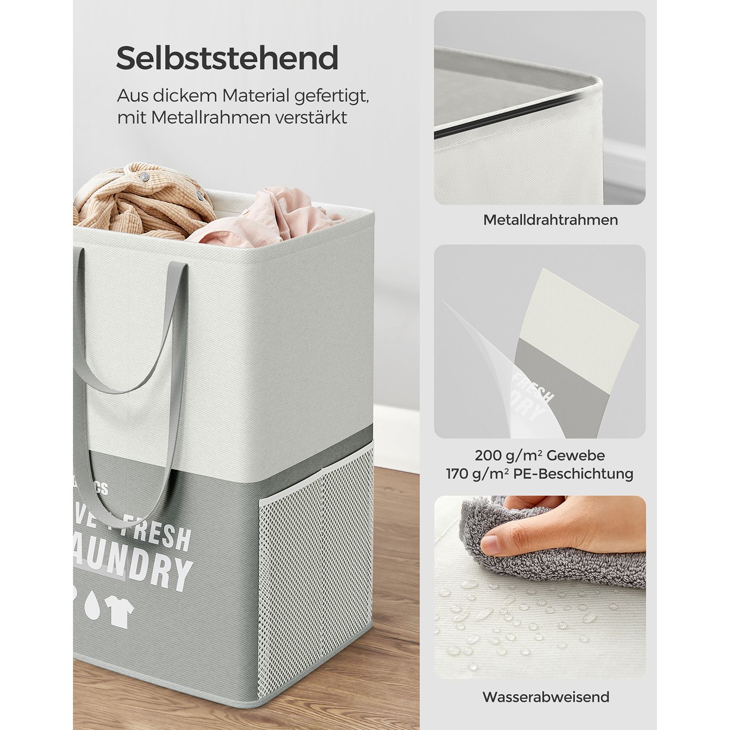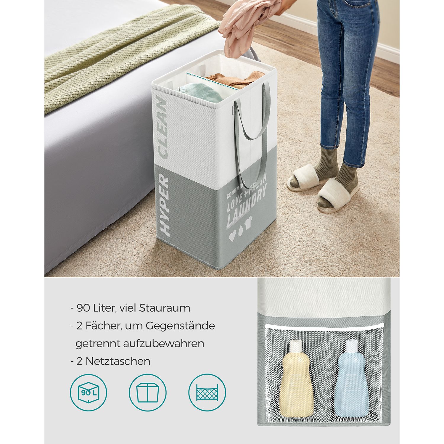 2 vnt. Komplektas skalbinių krepšelių su 2 skyriais, šviesiai pilkos spalvos