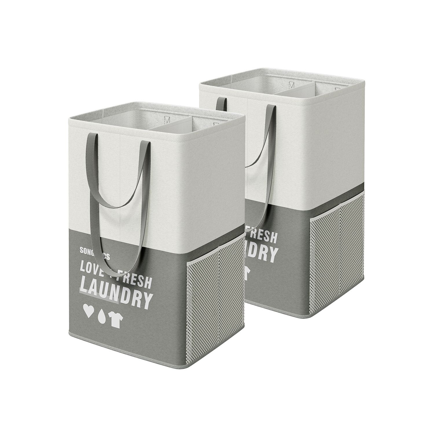 Šis 2 vnt. komplektas skalbinių krepšelių su 2 skyriais yra puikus pasirinkimas tvarkai palaikyti jūsų namuose. Tamsiai pilkos spalvos krepšeliai ne tik stilingi, bet ir funkcionalūs.
