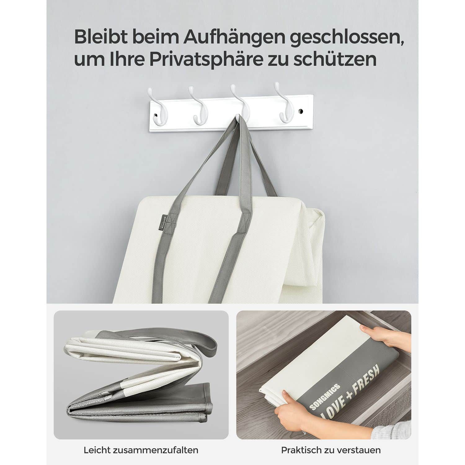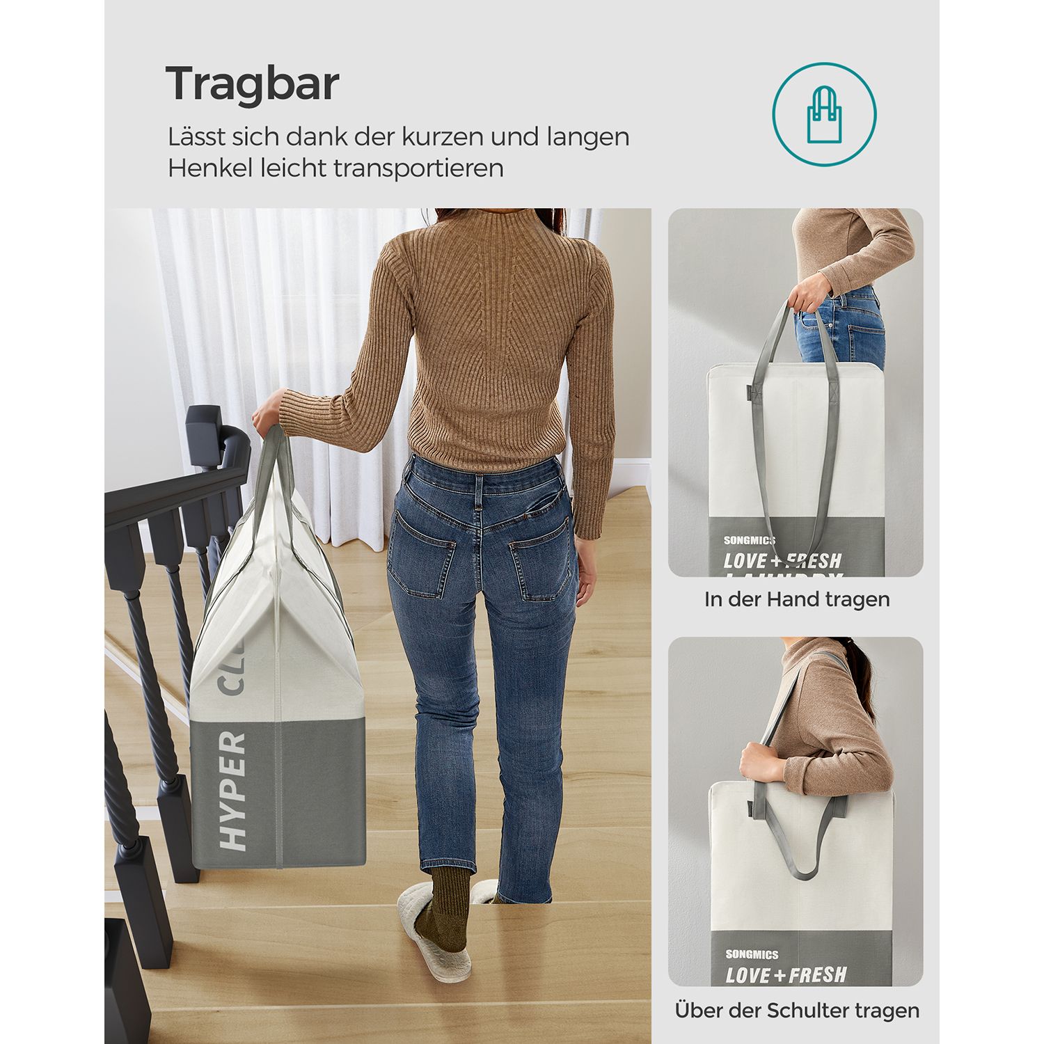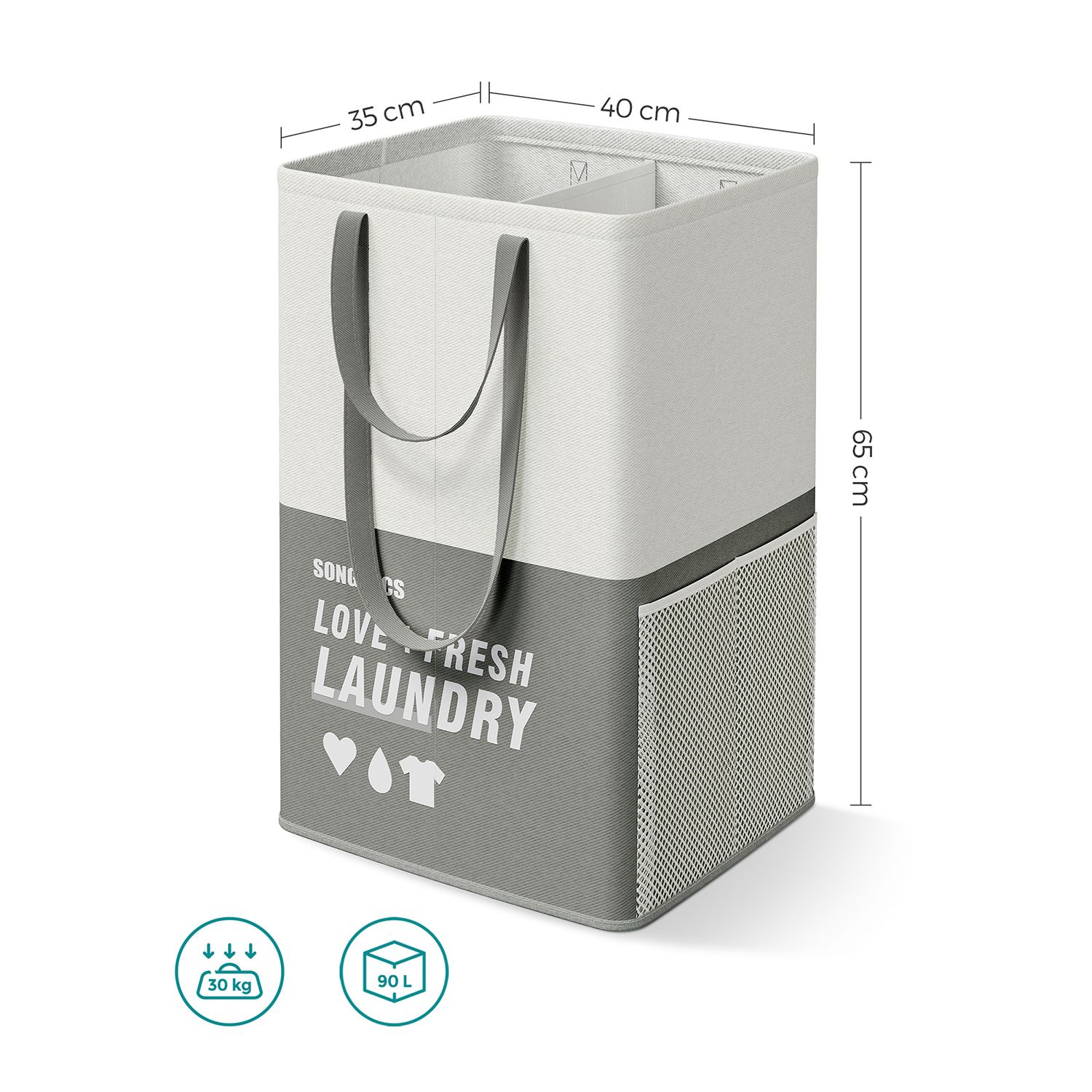 Didžiausia bendra statinė apkrova vienam skalbinių maišui yra 30 kg, todėl galite būti tikri, kad krepšeliai atlaikys net ir didesnį skalbinių kiekį.