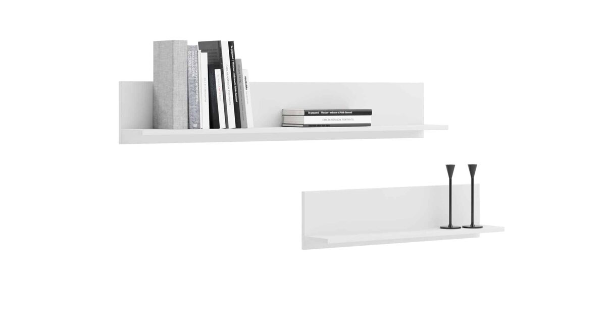 – **Raktažodžiai:** baldinė lenta, laminuota lenta, lentynos, balta spalva, ABS apvadas, metalinės tvirtinimo detalės, pagaminta Lenkijoje