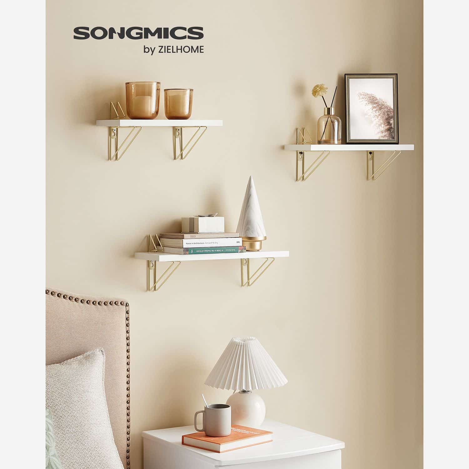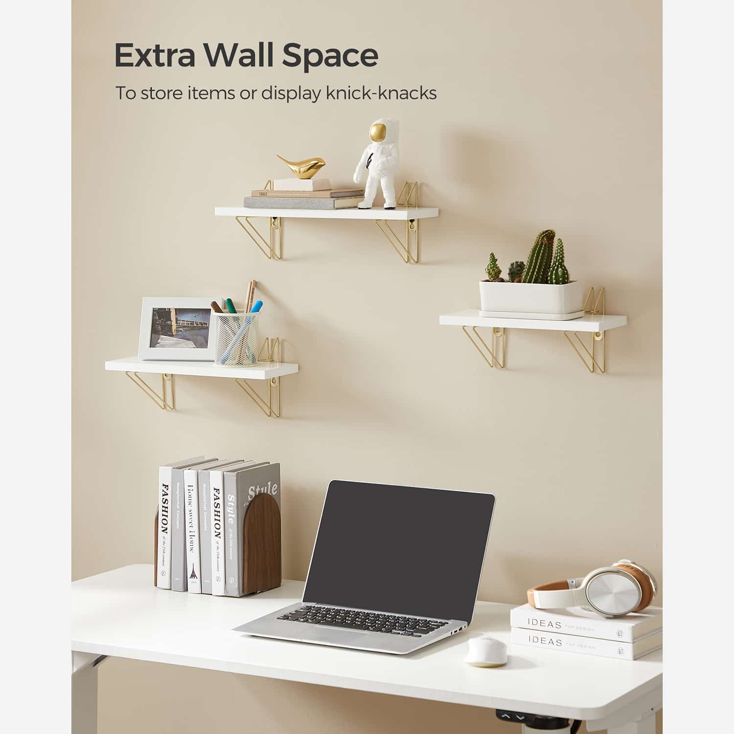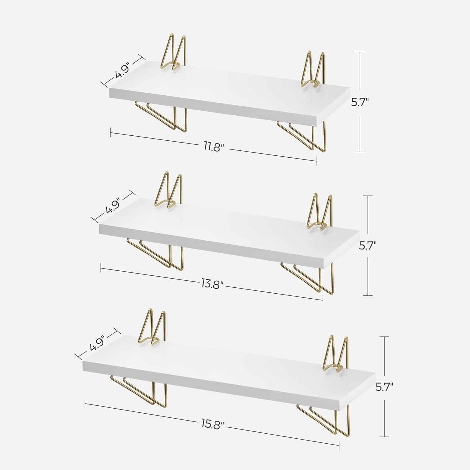 3-ijų sieninių lentynų rinkinys, baltos/auksinės spalvos