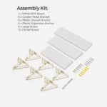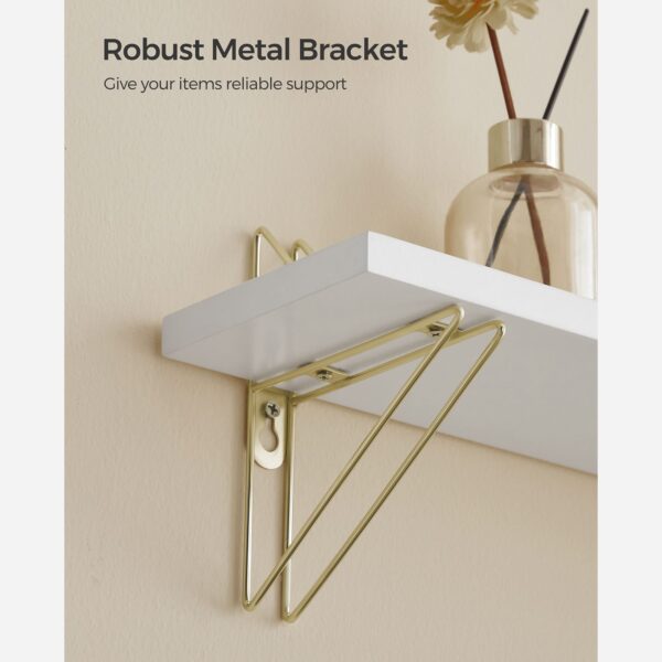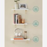 Šis 3-ijų sieninių lentynų rinkinys, baltos/auksinės spalvos, yra puikus pasirinkimas jūsų namų interjerui. Pagamintas iš aukštos kokybės medžio dulkių plokštė (MDF) (vidutinio tankio medienos plaušų plokštės) ir plieno, šis rinkinys užtikrina ilgaamžiškumą ir stilingą išvaizdą.