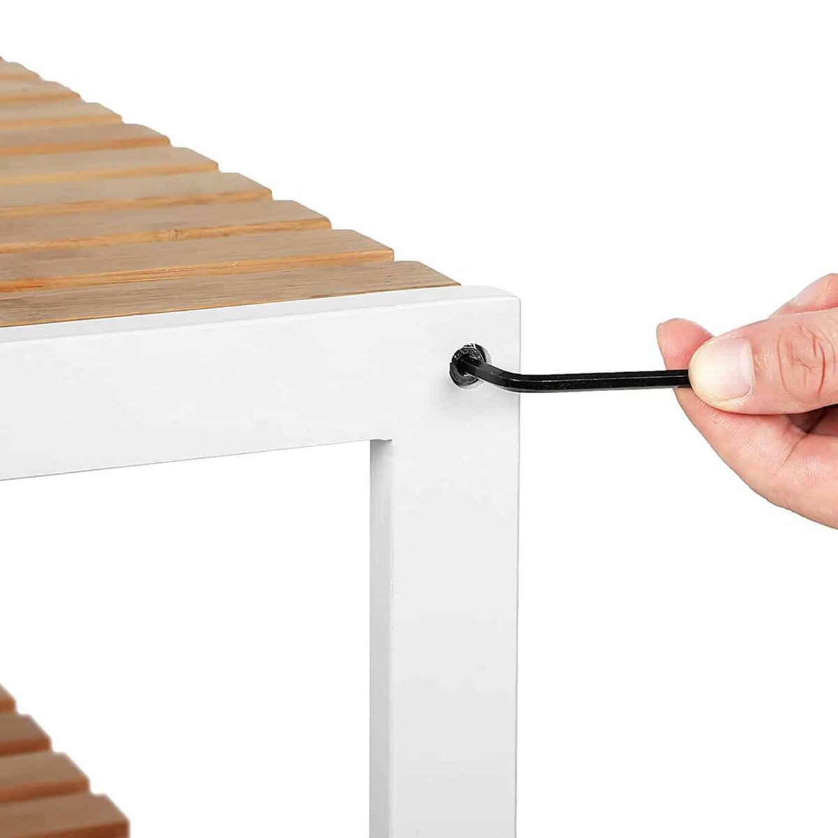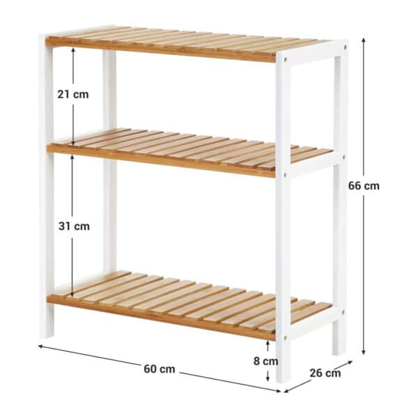 Ši 3 lygių bambukinė lentyna yra tikras universalus sprendimas. Padėkite ją ten, kur jos reikia: prieškambaryje, vonioje ar balkone. Nuo batų iki būtiniausių vonios reikmenų ar augalų vazonuose – viskas čia ras savo vietą.