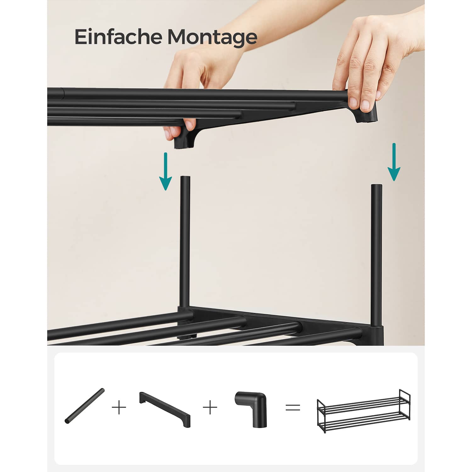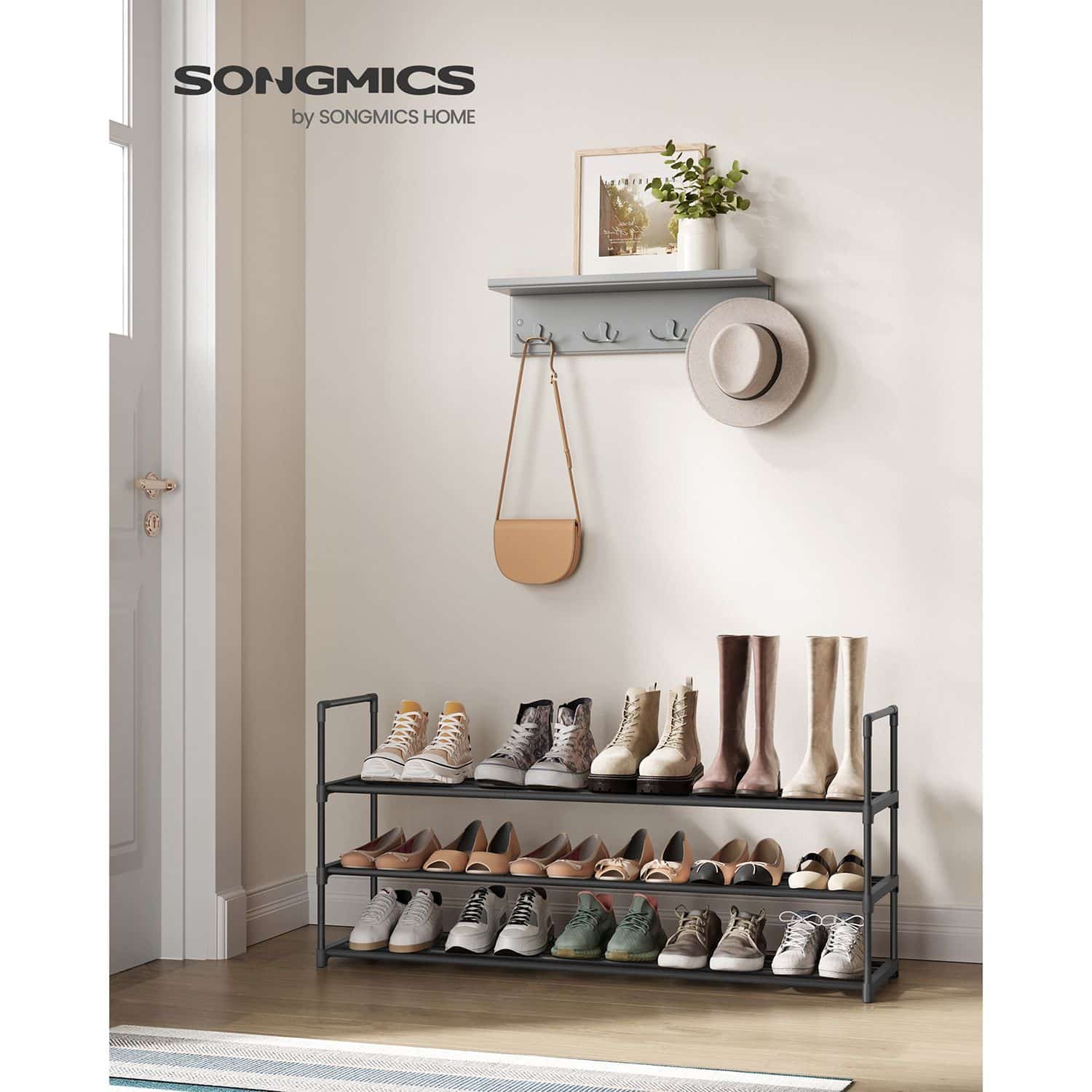 Ši 3 lygių batų lentyna, juodos spalvos, yra puikus sprendimas tvarkingai laikyti batus ir kitus daiktus. Jos kompaktiškas dydis leidžia lengvai pritaikyti bet kurioje namų vietoje.