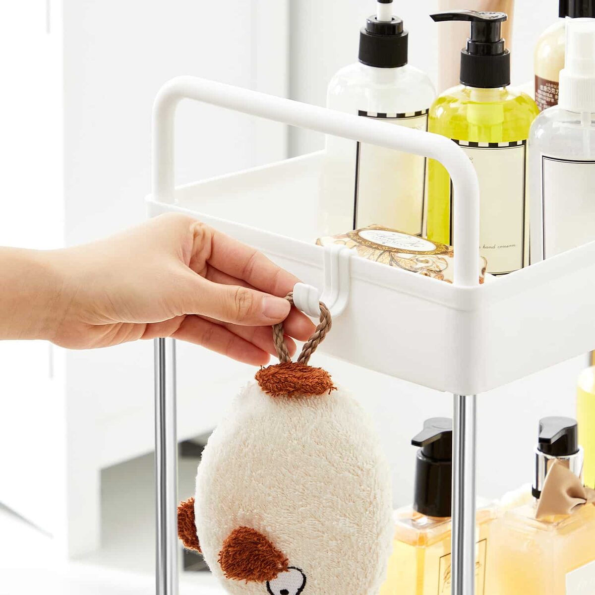 • Sunkesnius daiktus laikykite apatinėje lentynoje ir tolygiai padėkite arba pakabinkite ant kiekvienos pakopos, kad vežimėlis neapvirstų.