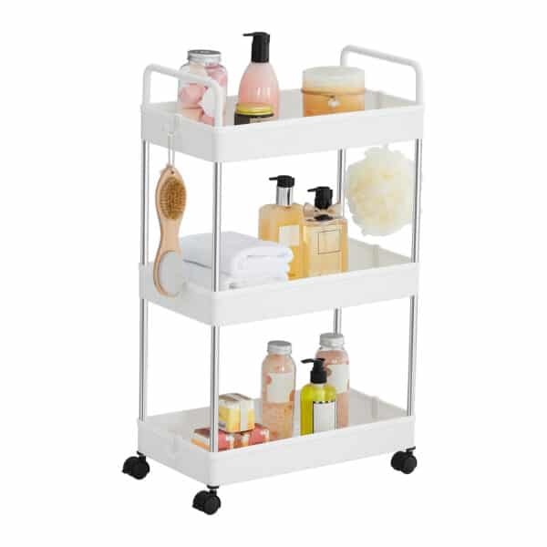 Šis 3 lygių vežimėlis / lentyna su ratukais yra puikus sprendimas jūsų namų ar biuro organizavimui. Jis pagamintas iš aukštos kokybės nerūdijančio plieno ir PP (polipropileno), užtikrinant ilgaamžiškumą ir patvarumą.