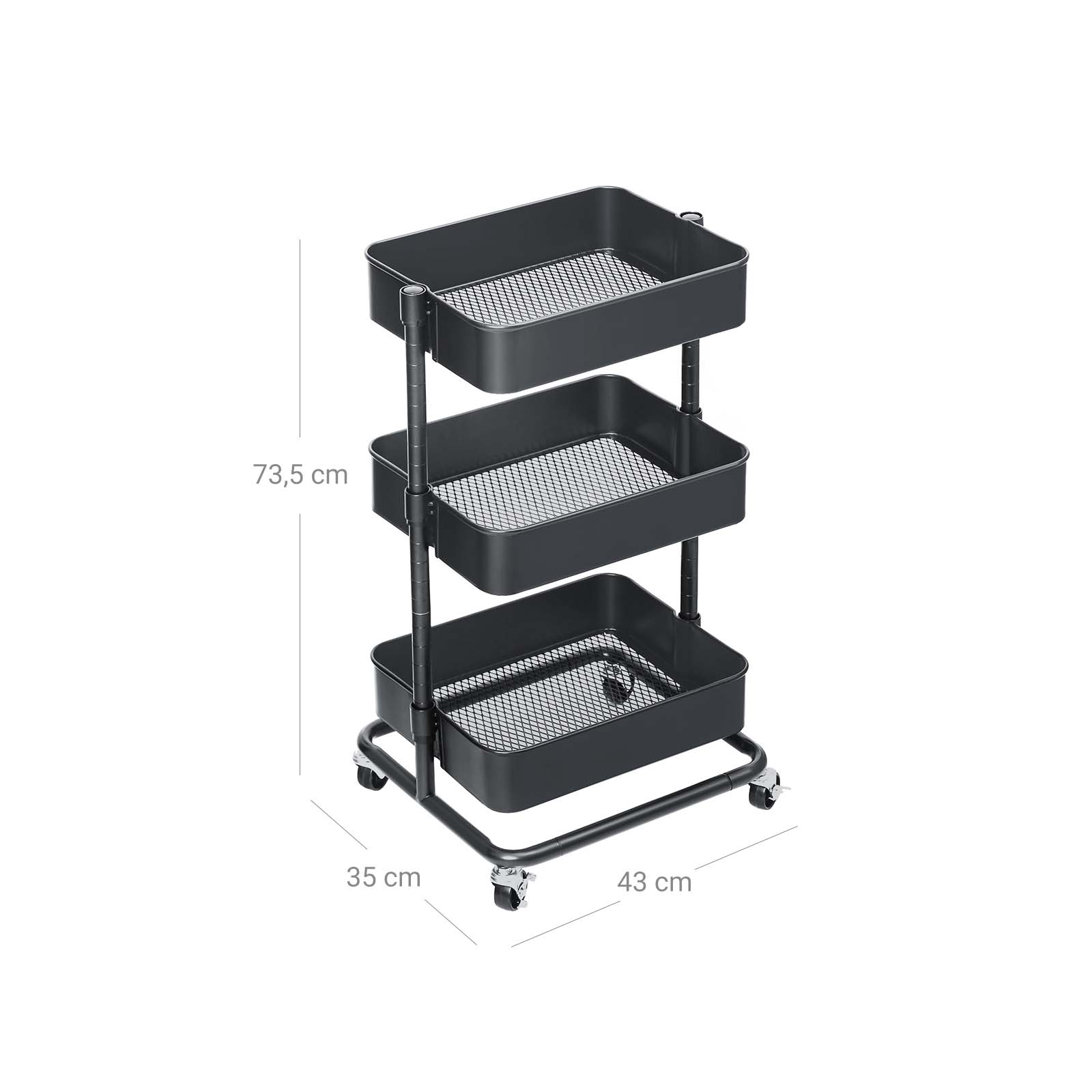 Universalus ir erdvus – šis SONGMICS 3 lygių vežimėlis namams, biurui, verslui yra tvirtas gynėjas nuo netvarkos jūsų namuose, klasėje ir biure. Jis turi 4 kokybiškus ratukus, iš kurių 2 galima užrakinti, kad būtų galima stumdyti pirmyn ir atgal arba likti vienoje vietoje.