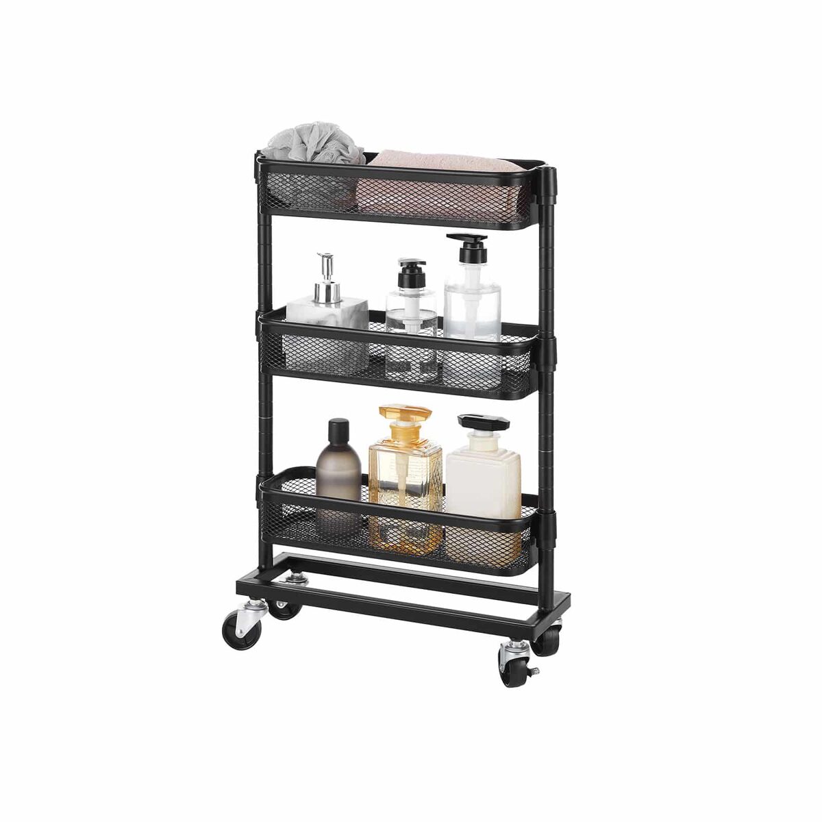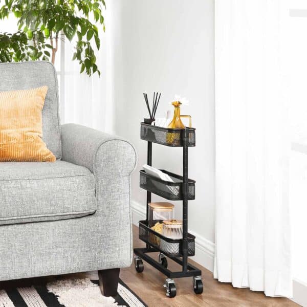 Naudinga šalia jūsų stalo: padėkite mažas dėžutes su biuro reikmenimis, segtuvus ir skylutes ant šio lankstaus vežimėlio ir pastumkite jį šalia savo stalo. Taip galėsite greitai pasiekti svarbius darbo priedus, kad jūsų stalas nenugrimztų į chaosą.