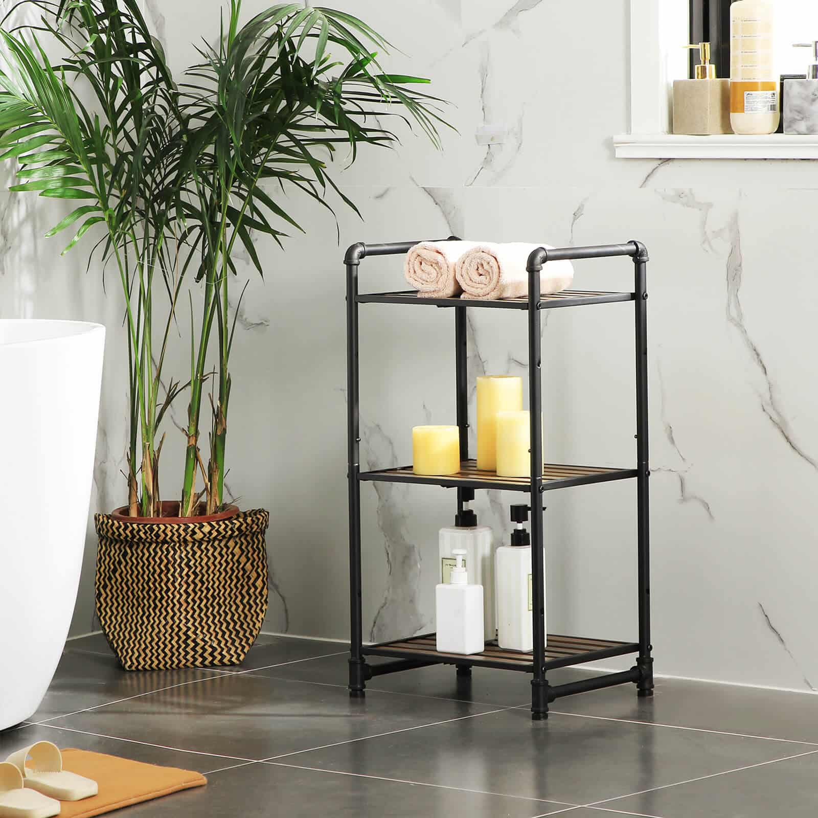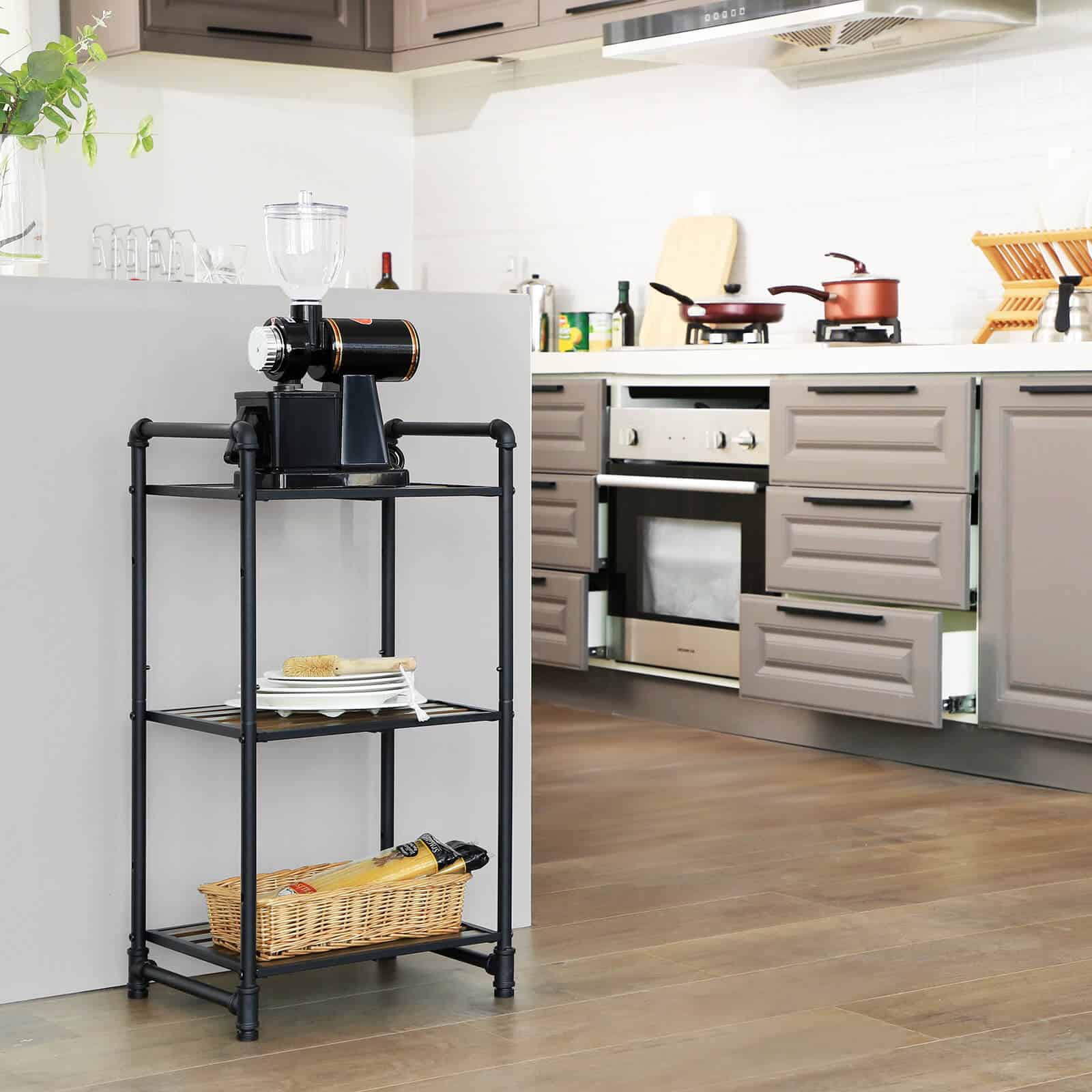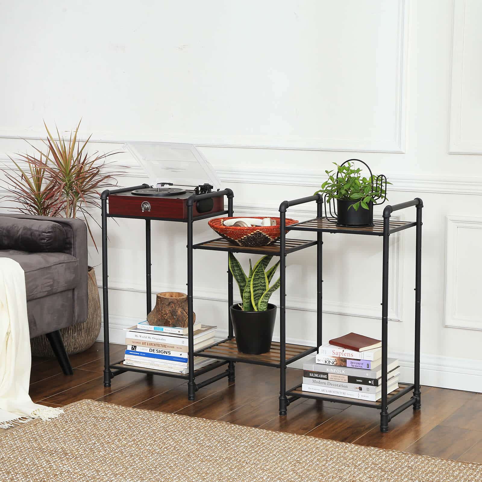 Spalva: Juodi vamzdžiai, tamsiai rudos vintažinės lentynos