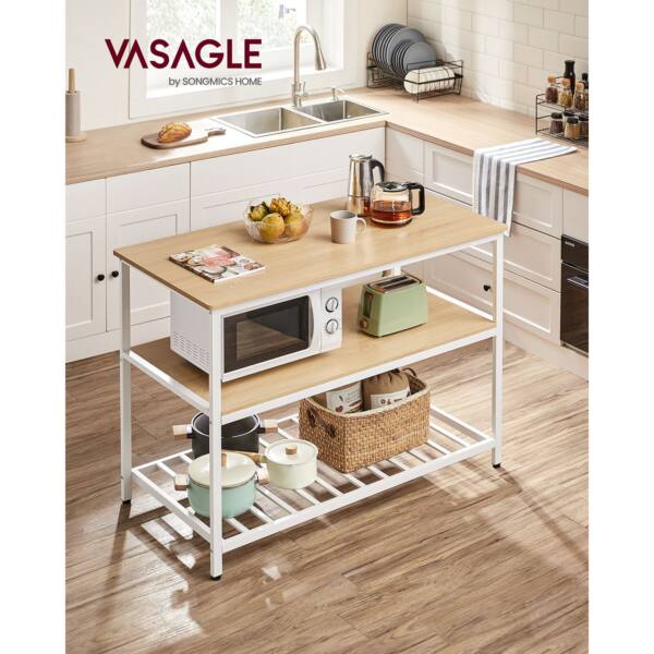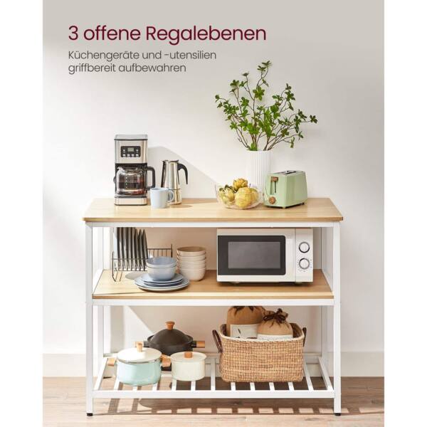 Ši 3 pakopų virtuvės lentyna su plieniniu rėmu yra puikus pasirinkimas jūsų virtuvei. Jos elegantiškas ąžuolo ir baltos spalvos derinys suteiks jūsų interjerui modernumo ir šilumos.