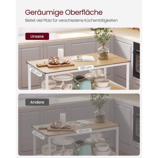 Pagaminta iš aukštos kokybės medžio drožlių plokštė (MDP) ir tvirto plieno, ši lentyna yra patvari ir ilgaamžė. Jos matmenys yra 60 x 120 x 90 cm , todėl ji puikiai tiks tiek mažesnėse, tiek didesnėse virtuvėse.