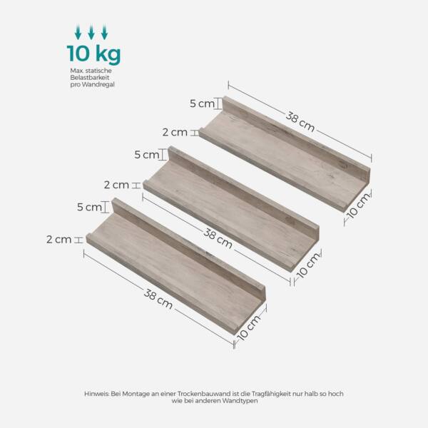 Šis 3 sieninių lentynų rinkinys dekoravimui, pilkai rudos spalvos, yra puikus pasirinkimas norint suteikti jūsų namams papildomo žavesio ir funkcionalumo. Lentynos ne tik puikiai atrodo, bet ir yra labai praktiškos.