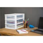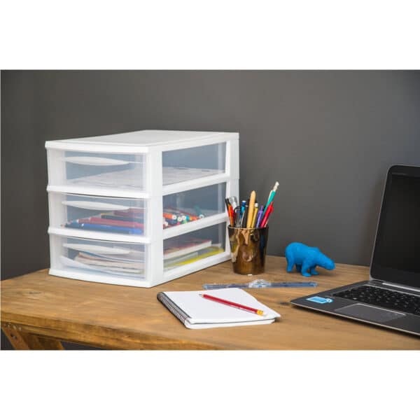 Moduliniai baldai – tai visas išdėstymo galimybių spektras. Paprastų sprendimų dėka galime sudaryti bet kokios konfigūracijos rinkinius. Jos skirtos tvarką, tvarką, kokybę ir naudojimo patogumą vertinantiems žmonėms. Norint efektyviai sutvarkyti vietą ant stalo, tereikia šio nedidelio trijų stalčių modulio, kuriame galėsite laikyti užrašus, rašiklius, žirkles ar sąvaržėles. Jį galite padėti ant lentynos ir joje laikyti kompaktinius diskus, įkroviklio laidus, USB atmintines ar dokumentus. Tokio nedidelio sprendimo dėka darbo ar mokymosi vietą galime padaryti tvarkingą, palankią susikaupti ir skatinančią kūrybiškumą. Nepakeičiamas jaunimo kambaryje, bendrabutyje ar biure. Jie užima mažai vietos, o dėl to, kad juos galima derinti vienas su kitu, dėti vieną ant kito arba atskirai, patalpą galima sukurti pagal savo poreikius. Tinka A4 formatui.Patogi rankena stalčiui ištraukti.Apsauga nuo kritimo.Galima sukrauti su kitais šios serijos modeliais.: polipropilenas