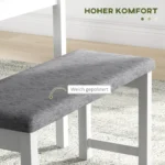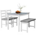 Nedidelį kambarį paverskite kviečiančiu valgomuoju. Naudodami 4 asmenų valgomojo stalo komplektą HOMCOM galite sukurti jaukią vietą kasdieniam maistui dalytis su savo šeimomis ar draugais. Rėmas pagamintas iš pušies masyvo, kuris ilgą laiką atlaiko kasdienį naudojimą ir reikalauja mažai priežiūros. Pastumkite valgomojo kėdes ir suolą po stalu, kad kambarys atrodytų didesnis. Parsineškite 4 dalių HOMCOM valgomojo stalo komplektą į namus ir mėgaukitės šeimos maistu.