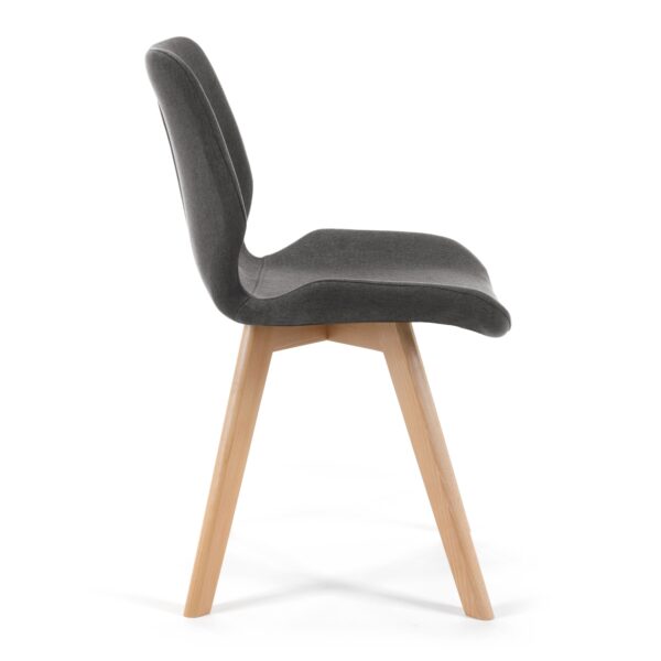 Šiuolaikinė skandinaviško stiliaus kėdė pilkos ir rudos spalvos. Sėdynę ir atlošą juosiantis medžiaginis apmušalas yra labai patogus ir malonus liesti. Medinės kojelės suteikia kėdei papildomos elegancijos. Dėl šios priežasties kėdė tiks svetainėje, miegamajame, biure, laukiamajame ar biure. Kėdė parduodama komplektais – vienoje pakuotėje 4 vnt.