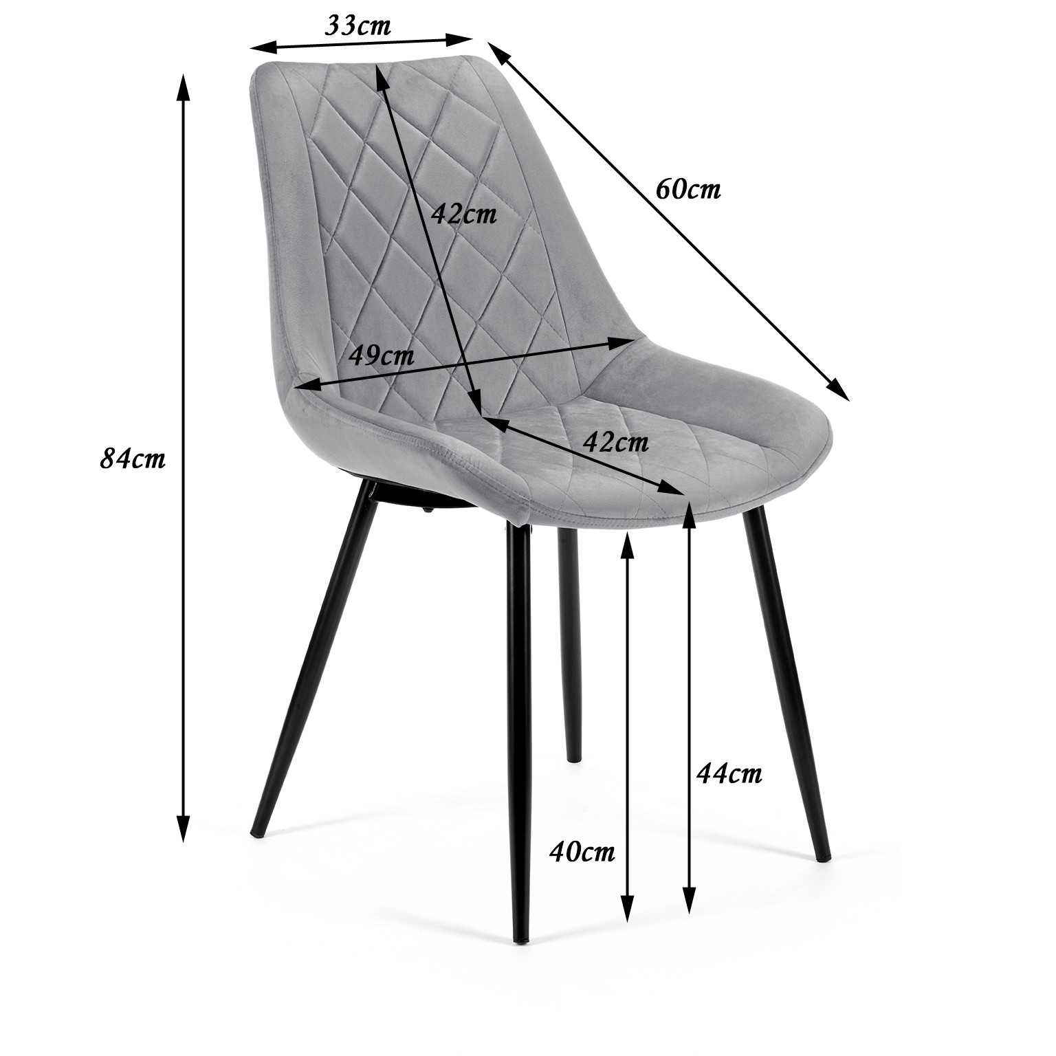 Šiuolaikinis dizainas ir vyraujančios tendencijos rodo, kad veliūras yra nuostabi ir praktiška medžiaga. Tokią savo kėdžių seriją norėtume pasiūlyti kaip modernaus ir stilingo interjero papildymą. SJ.0488 kėdė turi juodas metalines kojas. Tokios kojos tinka tiek klasikiniam dekorui, tiek modernioms kompozicijoms. Sėdynę ir atlošą juosia veliūriniai apmušalai, kurių dėka fotelis yra malonus liesti ir nesukelia diskomforto vasaros dienomis. Apmušalams naudojamas dygsniuotas audinys suteikia dar elegantiškesnę išvaizdą ir nesenstantį stilių. Kėdė parduodama komplektais – vienoje pakuotėje 4 vnt.