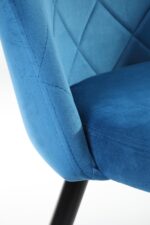 Šiuolaikinis dizainas ir vyraujančios tendencijos rodo, kad veliūras yra nuostabi ir praktiška medžiaga. Tokią savo kėdžių seriją norėtume pasiūlyti kaip modernaus ir stilingo interjero papildymą. SJ.077 tipo kėdė turi juodas metalines kojas. Tokios kojos tinka tiek klasikiniam dekorui, tiek modernioms kompozicijoms. Sėdynę ir atlošą juosia veliūriniai apmušalai, kurių dėka fotelis yra malonus liesti ir nesukelia diskomforto vasaros dienomis. Apmušalams naudojamas dygsniuotas audinys suteikia dar elegantiškesnę išvaizdą ir nesenstantį stilių. Kėdė parduodama komplektais – vienoje pakuotėje 4 vnt.