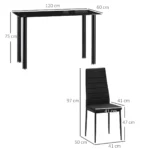 Net mažiausią kambarį paverskite jaukiu valgomuoju. Patogiai ir patogiai vakarieniaukite su šeima ir draugais prie šio valgomojo stalo su 4 HOMCOM kėdėmis. Tvirtas plieninis rėmas yra itin patvarus, o elegantišką dirbtinės odos dangą ypač lengva prižiūrėti. Kad kambarys atrodytų didesnis ir įgautų daugiau naudingos erdvės, pastumkite kėdes po stalu. Įsineškite virtuvės stalą į savo namus ir mėgaukitės maistu iki soties.