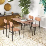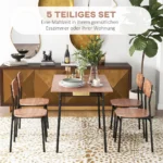 Mūsų valgomojo stalo komplektas iš HOMCOM suteikia jūsų valgomajam stilingumo ir yra elegantiškas šeimos vakarienės ir susibūrimų su draugais elementas. Erdvus stačiakampis stalas suteikia vietos jūsų indams, o metalinė lentyna po stalu suteikia papildomos vietos. Mažas stalas ir kėdės stovi ant tvirtų plieninių kojų ir išsiskiria stabilumu bei kokybe. Pasinerkite į puikų stiliaus, kokybės ir komforto derinį su mūsų valgomojo baldais.