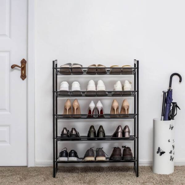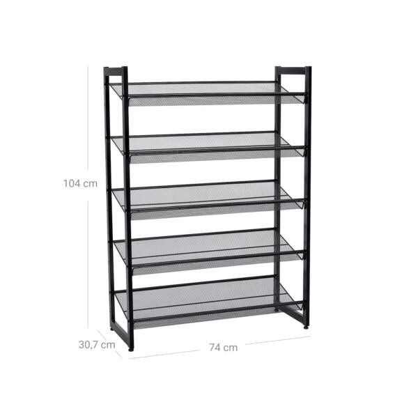 Nerekomenduojame naudoti dviejų 5 lygių batų lentynų dėjimo vieną ant kitos, nes tai gali neigiamai paveikti gaminių saugą ir stabilumą.