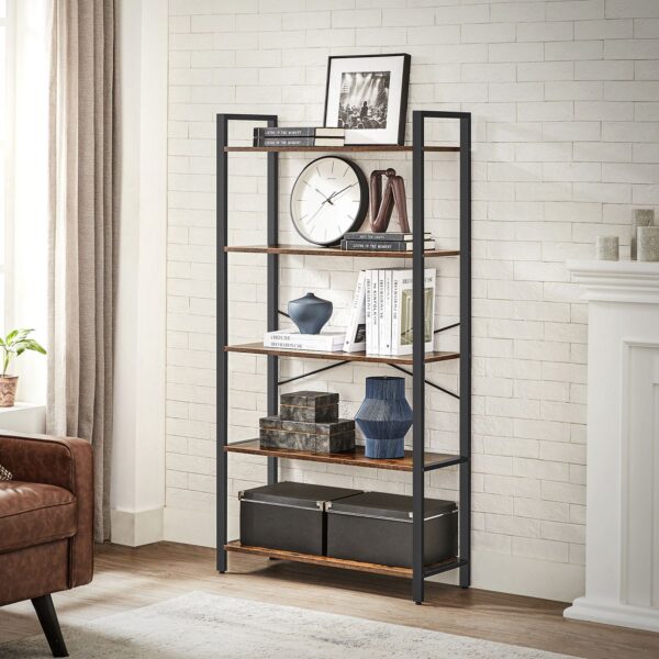 Ši 5 pakopų lentyna LLS081B01 yra puikus pasirinkimas jūsų namų ar biuro interjerui. Jos vintažinė ruda-juoda spalva suteikia elegancijos ir stiliaus, o tvirta konstrukcija užtikrina ilgaamžiškumą.