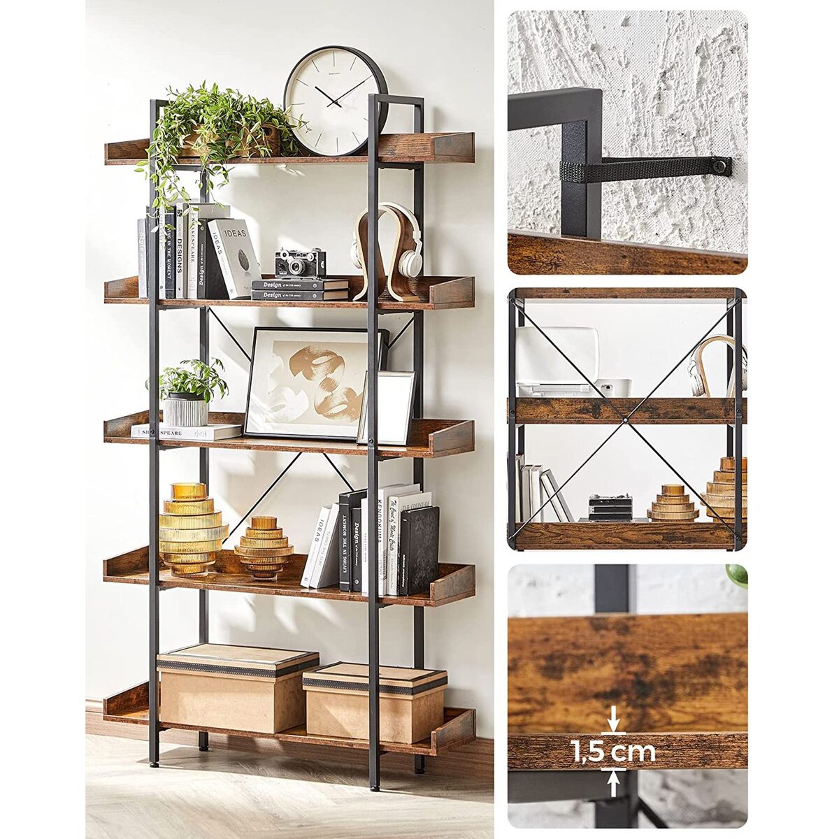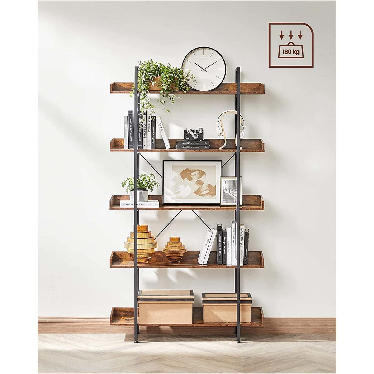 Ši 5 pakopų lentyna LLS110B01 yra puikus pasirinkimas tiems, kurie ieško stilingo ir funkcionalaus sprendimo savo namams ar biurui. Su vintažine ruda-juoda spalva ir tvirta konstrukcija, ši lentyna ne tik suteiks papildomos vietos daiktams, bet ir taps puikiu interjero akcentu.