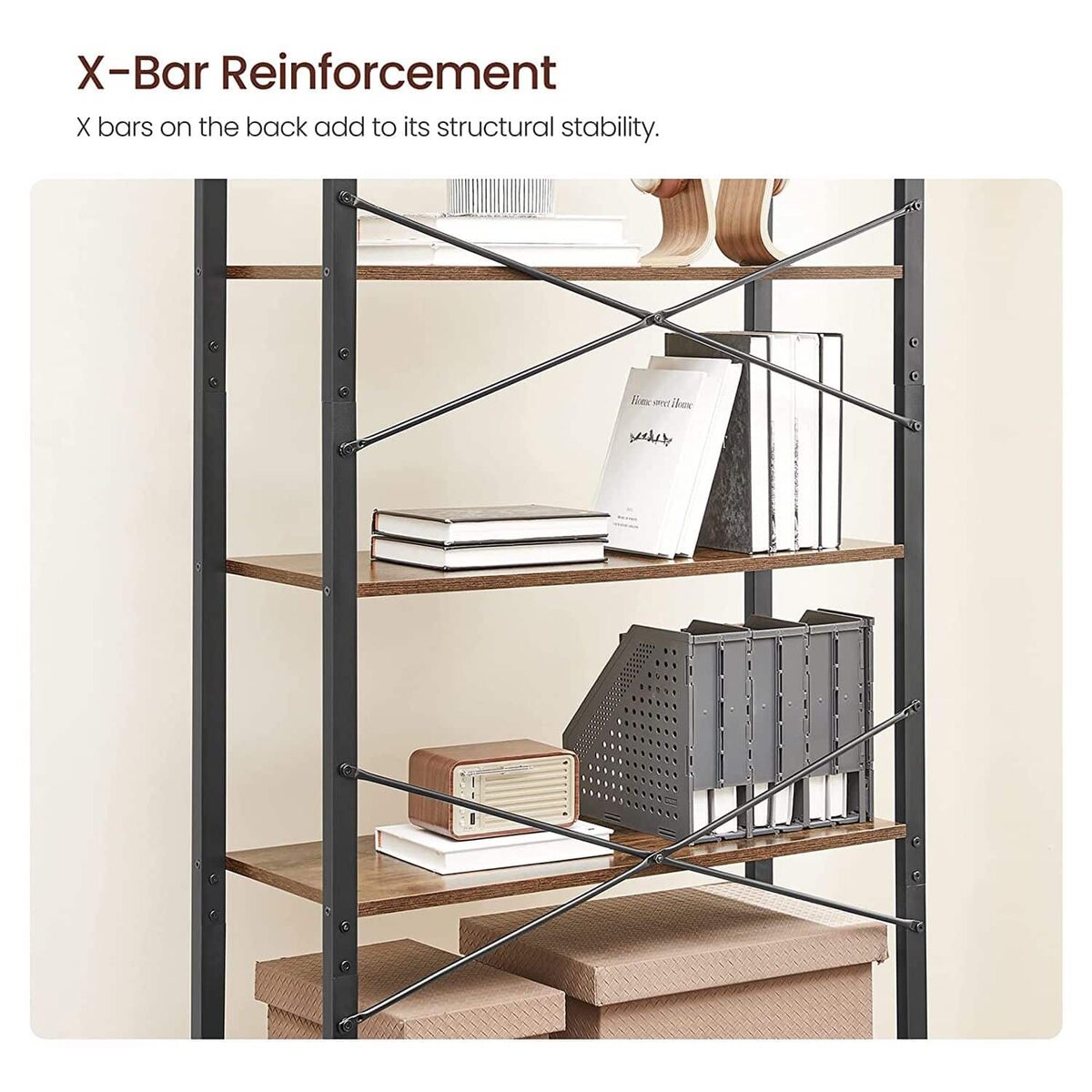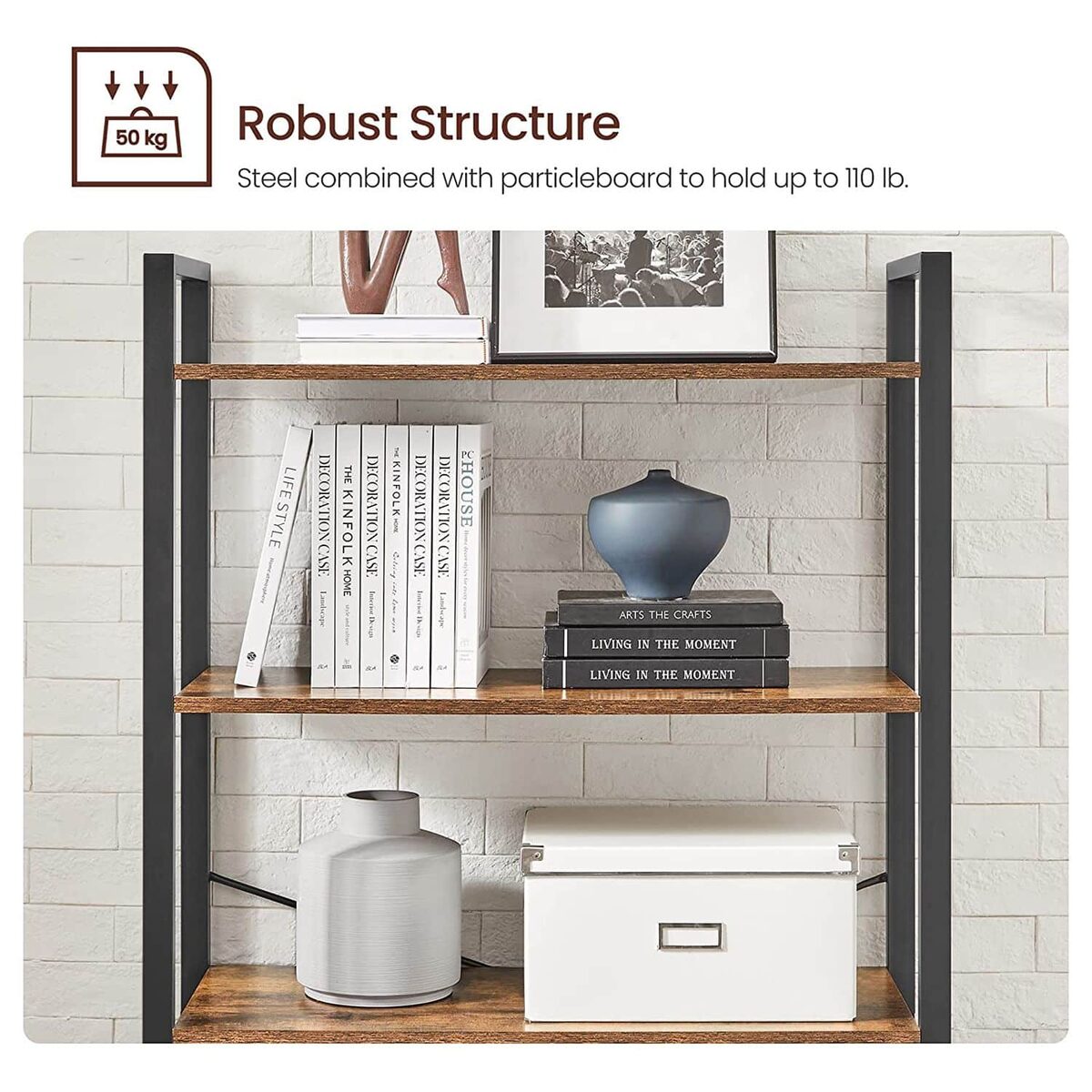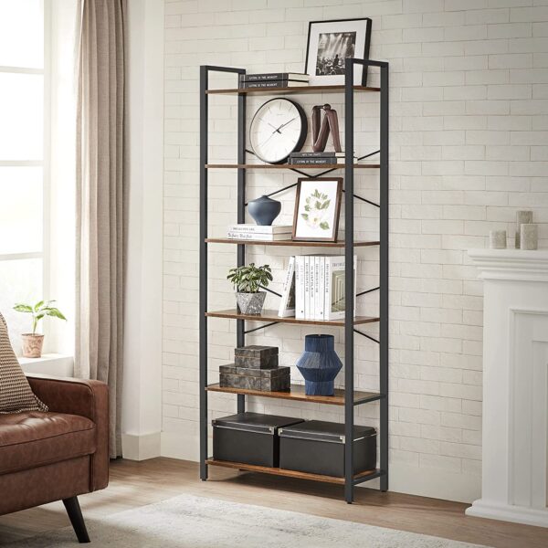 Ši 6 pakopų lentyna LLS082B01 yra puikus pasirinkimas jūsų namų ar biuro interjerui. Jos vintažinė ruda-juoda spalva suteikia elegancijos ir stiliaus, o tvirta konstrukcija užtikrina ilgaamžiškumą.
