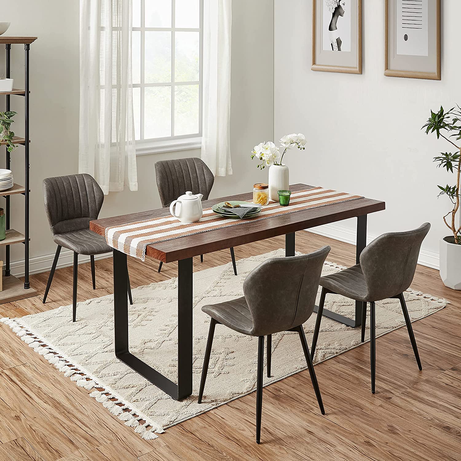 Išbandykite jaukumą: Ergonomiškas dizainas, storas putplasčio paminkštinimas, aukštos kokybės PU danga ir patvarios metalinės kojos – šie elementai sukuria tvirtą ir patogią kėdę. Dar geriau, kad kėdė yra gražios išvaizdos, kuri įneša malonią atmosferą į bet kurį kambarį.