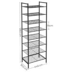 Kodėl verta rinktis šią ploną batų lentyną? Kompaktiško dydžio (44,6 x 30,5 x 128,5 cm) ši 8 pakopų batų lentyna suteikia daug vietos ir užima mažai vietos. Metalinis rėmas suteikia šiai lentynai papildomo tvirtumo. Padėkite ją sandėliuke kaip laikymo lentyną, prieškambaryje tvarkyti batus arba tiesiog tuščiame kampe. Reguliuojamos kojelės užtikrina puikų stabilumą ir apsaugo grindis nuo įbrėžimų.
