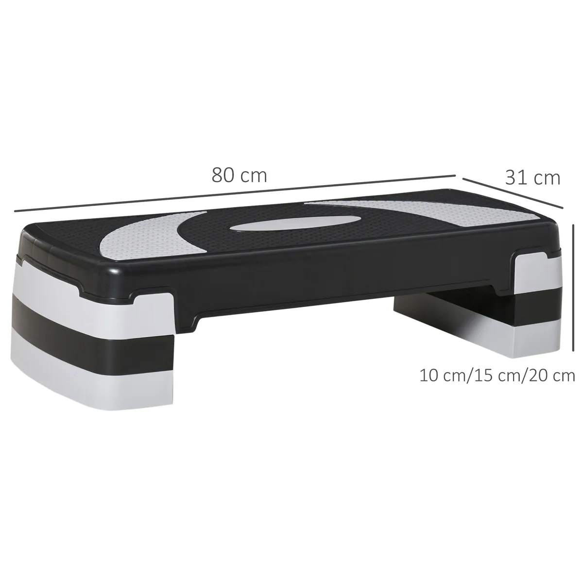 Padarykite savo kūno rengybos ir kardio treniruotes ypač efektyvias ir švelnias su šiuo aerobiniu žingsniu iš HOMCOM. Modulinė gamyba leidžia reguliuoti aukštį nuo 10, 15 iki 20 cm. Patvarios ir ilgaamžės medžiagos ne tik užtikrina tvirtą laikymąsi, bet ir apsaugo sąnarius dėl savo smūgius sugeriančių savybių. Ypatingai kompaktiškas, galite lengvai pasiimti su savimi bet kur ir laikyti jį, kad sutaupytumėte vietos.