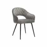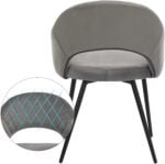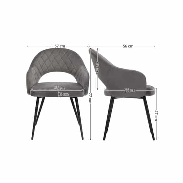 Ši aksominė valgomojo kėdė, pilkos spalvos, pasižymi ne tik išskirtinėmis siūlėmis, bet ir elegantiškomis metalinėmis kojomis, išsikišusiomis į išorę. Parodykite savo puikų skonį su šia kėde!