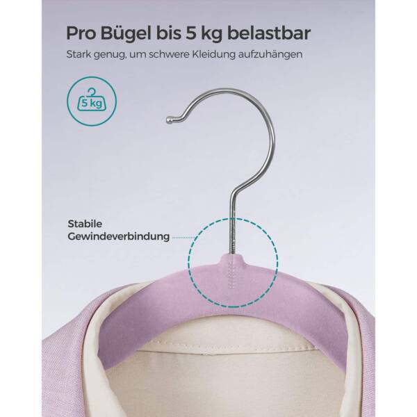 Pagamintos iš aukštos kokybės velveto, ABS plastiko ir metalinio kabliuko, šios kabyklos yra tvirtos ir ilgaamžės. Jos puikiai tinka tiek lengviems, tiek sunkesniems drabužiams, nes maksimalus statinis apkrovimas siekia net 5 kg.