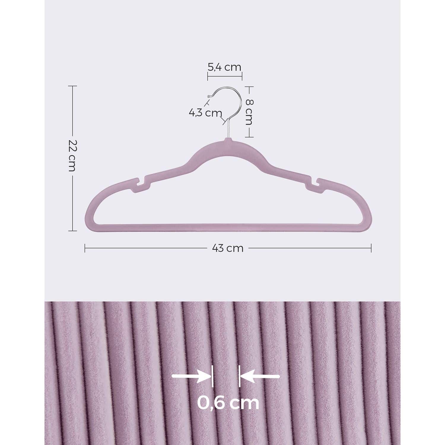 Kiekvienos pakabos dydis yra 43 x 0,6 x 22 cm, todėl jos idealiai tinka įvairių dydžių drabužiams. Komplekte yra 30 pakabų, kurių bendras svoris yra 2,2 kg, todėl turėsite pakankamai vietos visiems savo drabužiams.