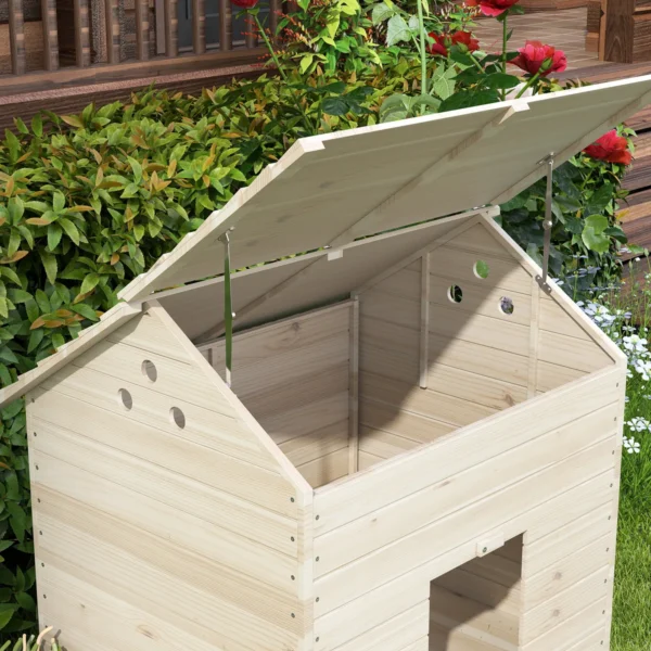 Šis „PawHut“ ančių namelis sukurtas taip, kad tarnautų, todėl jūs ir jūsų augintiniai juo džiaugsitės sezoną po sezono. Ančiukas yra pagamintas iš tvirtos medžio masyvo, o priekines duris taip pat galima naudoti kaip rampą, kad antys galėtų lengvai patekti į vidų. Smulkių gyvūnų namelio stogas gali būti lengvai atidaromas apžiūrai ar valymui, o paaukštintos grindys apsaugo gyvūnus nuo drėgmės ir šalčio.