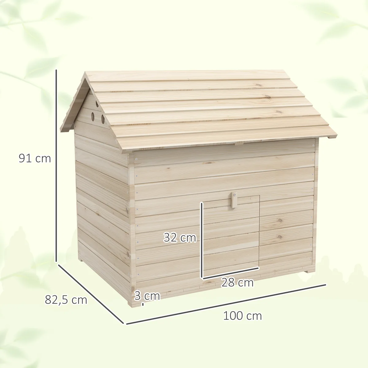 - ✔ Nuožulnus stogas ir eglės medžiaga užtikrina, kad šis paukštynas tinkamas naudoti lauke