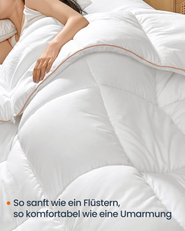 Ši debesų baltos spalvos antklodė yra puikus pasirinkimas jūsų miegamajam, suteikiantis jaukumo ir šilumos. Pagaminta iš aukštos kokybės 110 gsm mikropluošto ir 7D poliesterio pluošto, ši antklodė užtikrina ilgaamžiškumą ir komfortą.