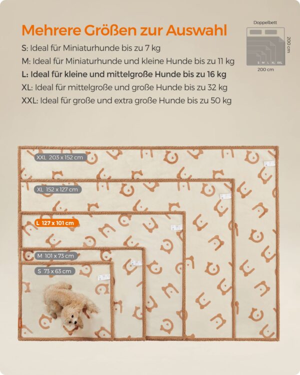 - Dydis: 127 x 101 cm (Ilgis x Plotis) – pakankamai didelė, kad tiktų įvairių dydžių šunims.