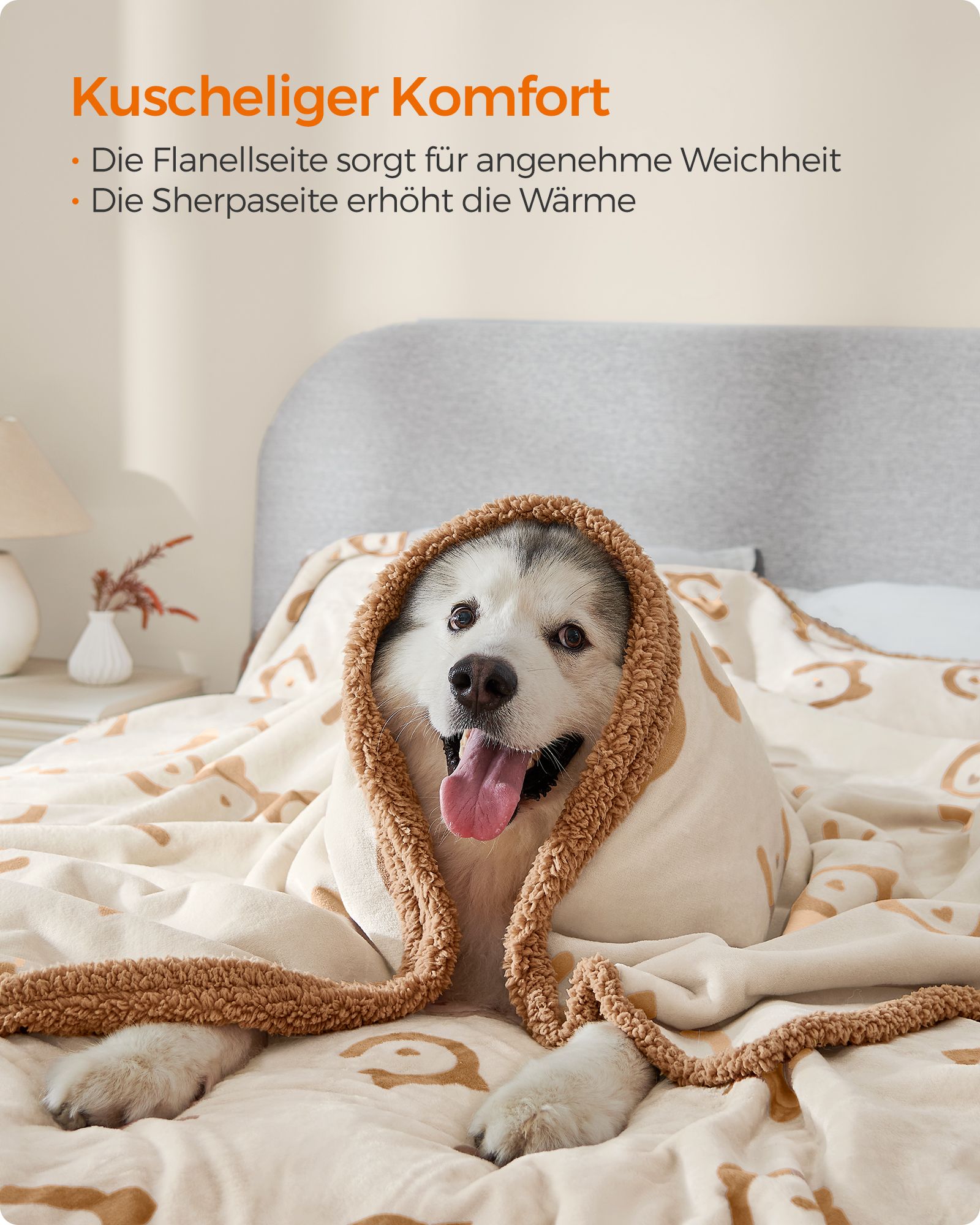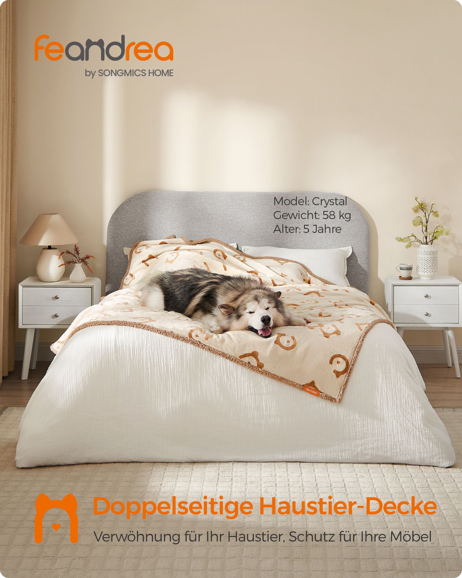 Padovanokite savo augintiniui komfortą ir šilumą su šia prabangia antklode, specialiai sukurta šunims. Šviesiai rudos spalvos antklodė ne tik puikiai dera prie bet kokio interjero, bet ir suteikia jūsų augintiniui jaukumo jausmą.