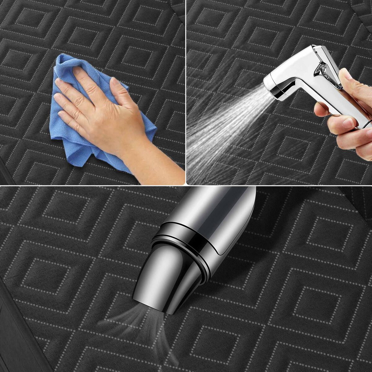 Lengva surinkti, lengva valyti: Pirma, į rankeną panašus laikiklis įstumiamas tarp sėdynės pagalvėlės ir atlošo, kad stabilizuotų antklodę. Tada pritvirtinkite dirželius prie galvos atramų ir sureguliuokite juos iki idealaus ilgio. Uždenkite sėdynę iki pusės iki apatinio krašto. Baigta! Dabar pakvieskite savo šunį. Norėdami nuvalyti paviršių po važiavimo, tereikia drėgnos šluostės.