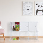 - 3 dėžės: Papildoma vieta laikyti maistą, žaislus ar kitus reikmenis, užtikrinant tvarką ir patogumą.