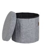 Madingas pufas su sustiprinta MDF sėdyne. Tai bus puiki spintelė įvairiems daiktams susidėti ir leis patogiai sėdėti. Matmenys Aukštis: 36 cm Skersmuo: 38 cm Specifikacijos Medžiaga: MDF / poliesteris Spalva: pilka Sulenkti matmenys: 9x38cm Svoris: 1,95 kg