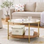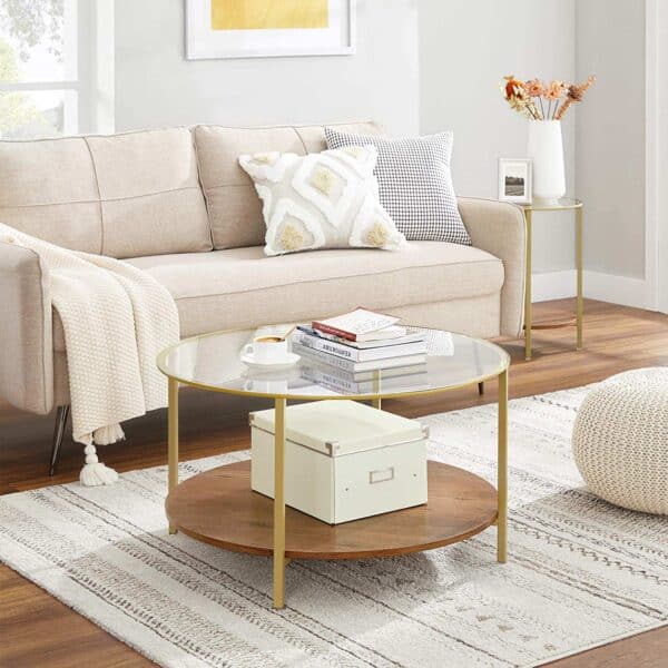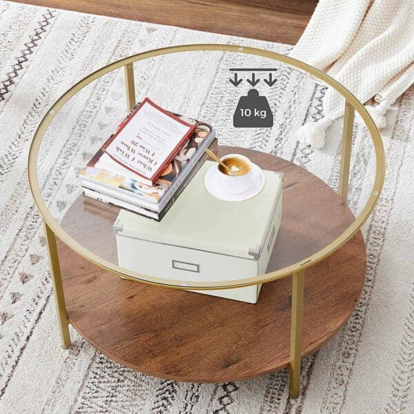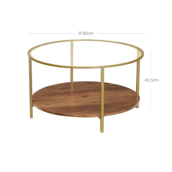 Šis apvalus kavos staliukas su grūdintu stiklu yra puikus pasirinkimas jūsų svetainei. Jo elegantiška lazdyno-auksinė spalva ir modernus dizainas suteiks jūsų interjerui išskirtinumo.