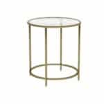 Dėl tvirtų medžiagų šis mažas staliukas tinka net jūsų balkonui ar terasai. Apvalus auksinis rėmas iš milteliniu būdu dengtos geležies ir stiklo elementas sukuria unikalų retro įvaizdį, kuris puikiai dera tiek stilinguose kambariuose su didelėmis minkštomis sofomis ir kiliminėmis dangomis, tiek minimalistiniuose interjeruose.