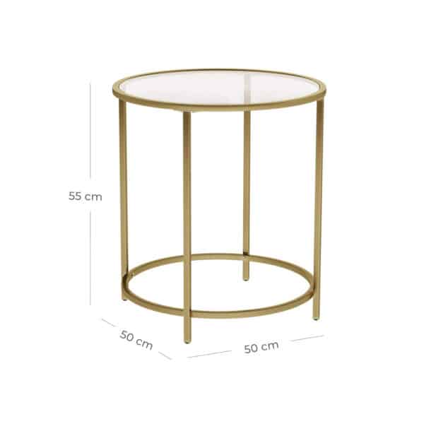 Stilingas šoninis staliukas su auksiniu rėmu ir stikliniu stalviršiu ne tik suteikia stabilų paviršių, ant kurio galite padėti, pavyzdžiui, vazą su nuostabiomis raudonomis rožėmis, bet ir prideda elegancijos jūsų interjerui. Šis staliukas su auksiniu rėmu gali būti naudojamas kaip akį traukiantis akcentas prie sofos, naktinis staliukas prie lovos arba biure, kur galėsite laikyti vandens stiklinę ir užkandžius.