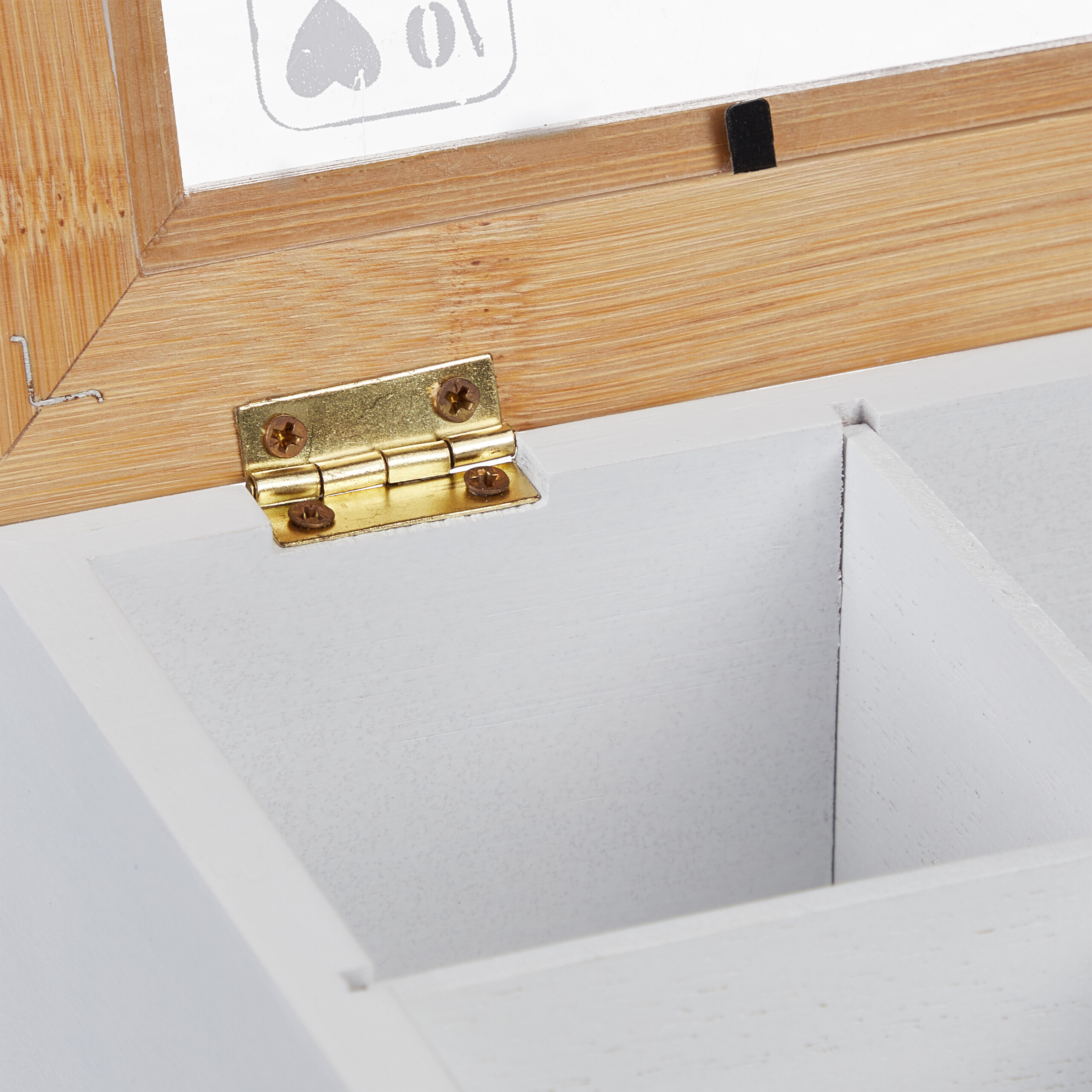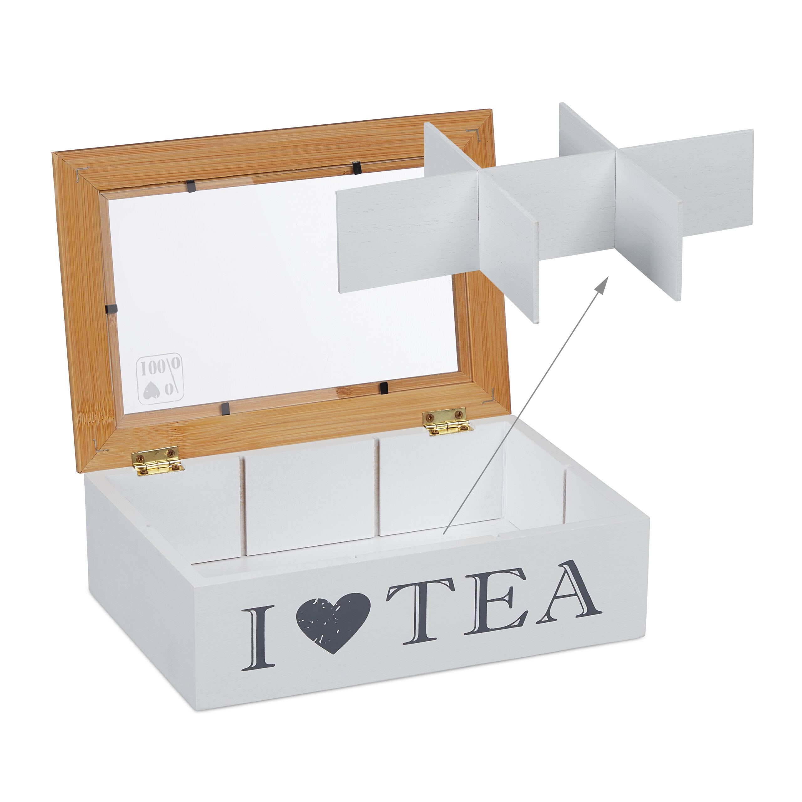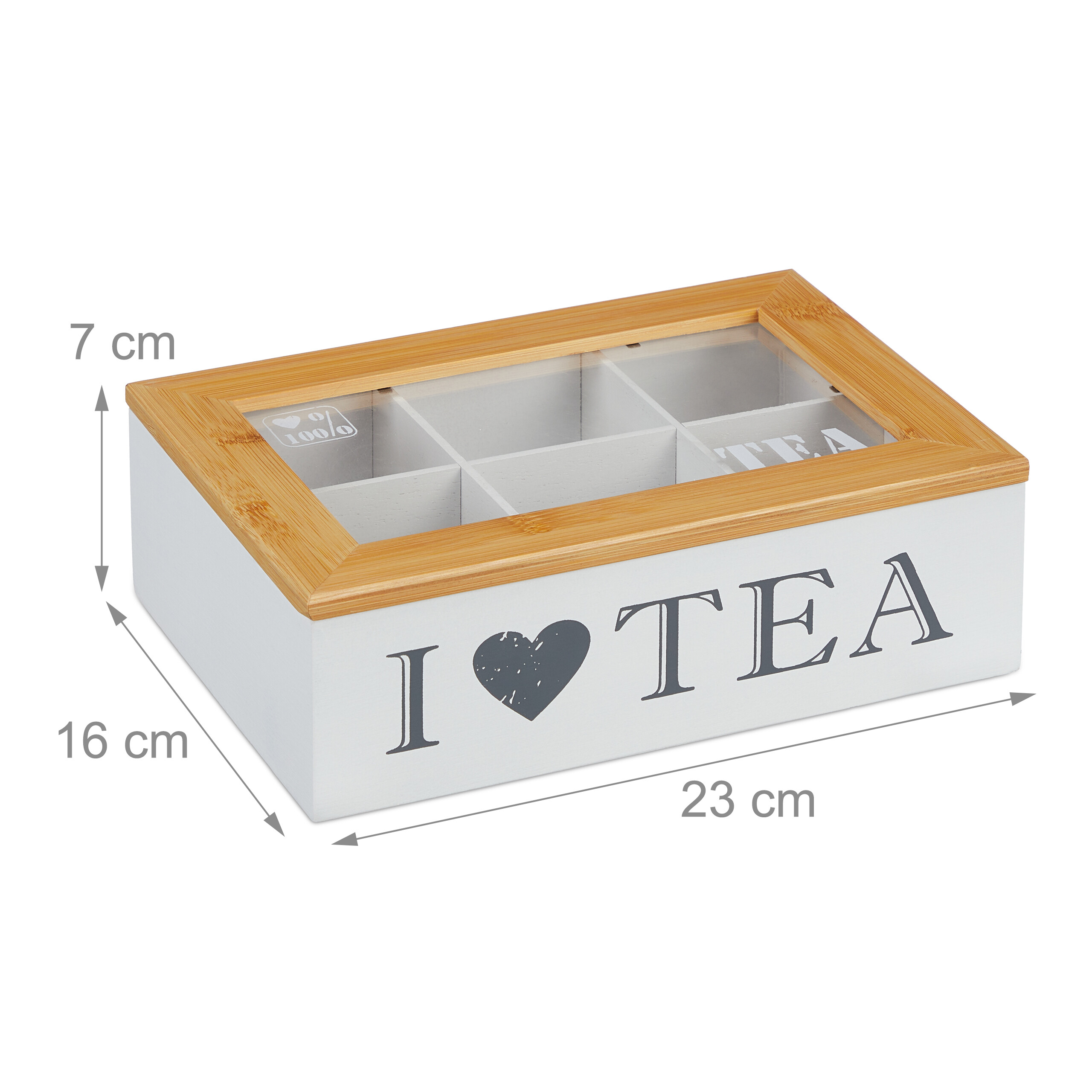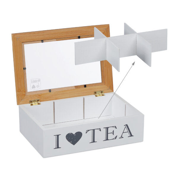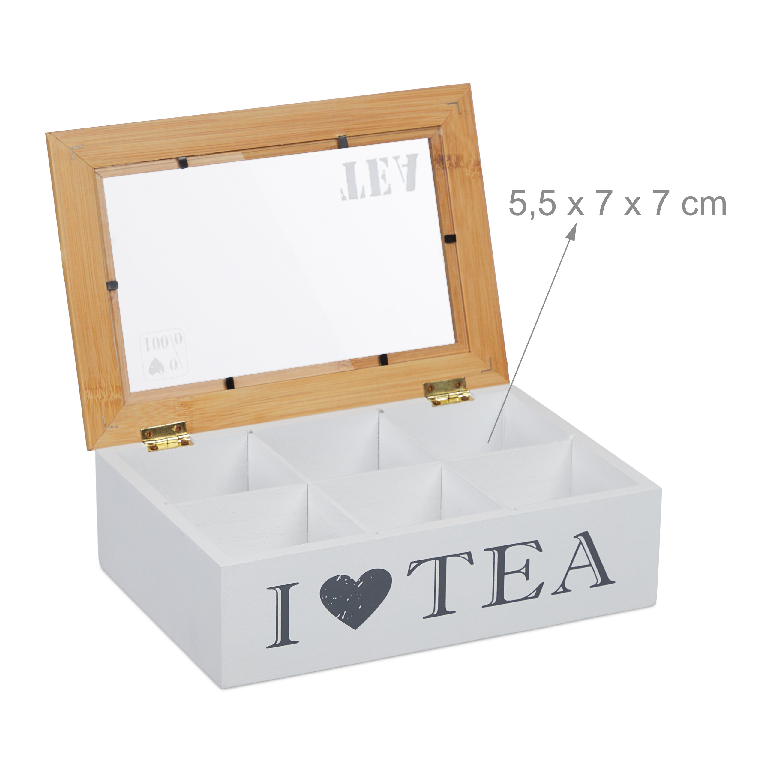 - Funkcionalumas: 6 skyriai leidžia laikyti skirtingų rūšių arbatą aiškiai ir tvarkingai.